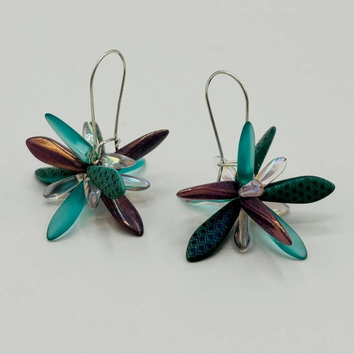 The Eileen earrings make effortless style easy. Crafted from sterling silver and Czech glass beads, they feature a captivating blend of turquoise and purple. Elegant yet versatile, they’re designed to complement both everyday looks and special occasions with timeless charm and subtle sparkle.