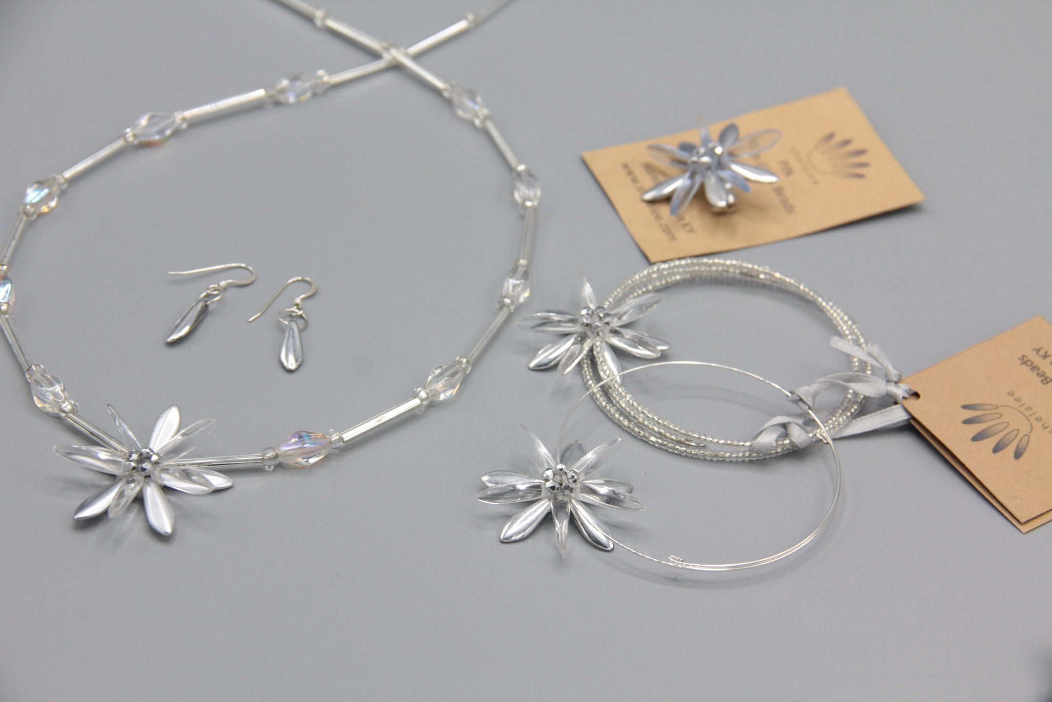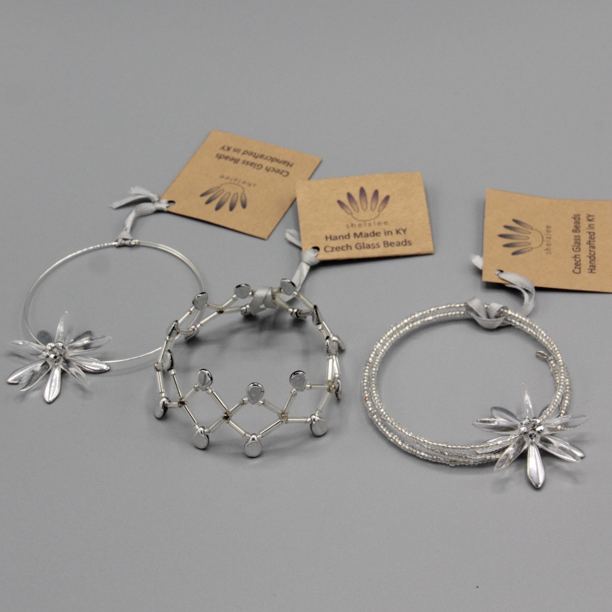 Wishing to have spring any month of the year? Simply slide on our Zoe flower bracelet. The Shelalee Signature flower sits neatly on a shiny silver color memory wire. The bracelet is made to hug your wrist with a joyful twist.