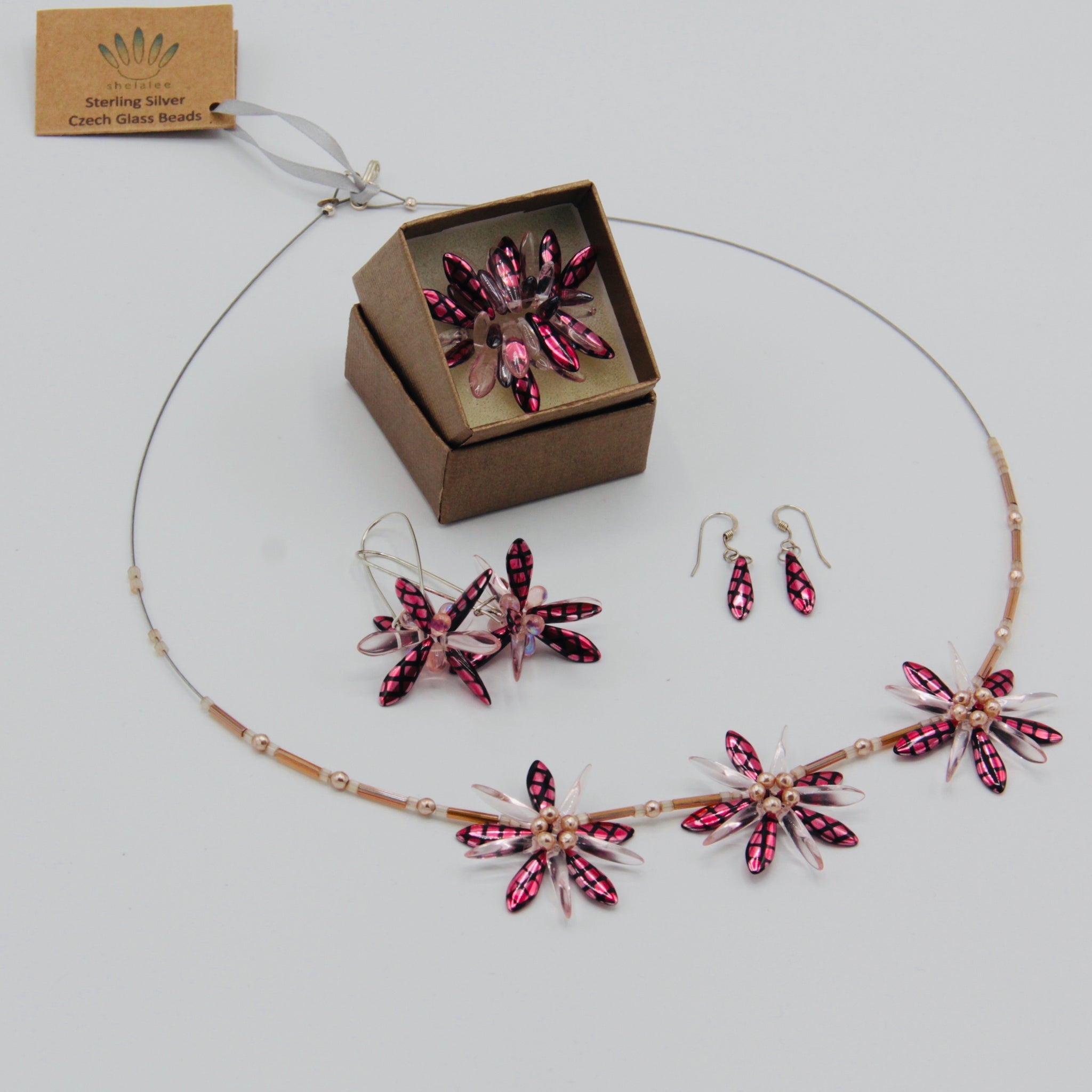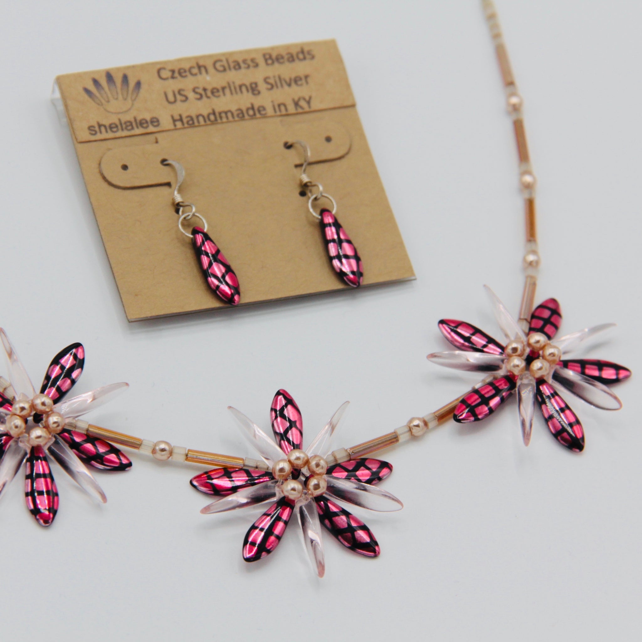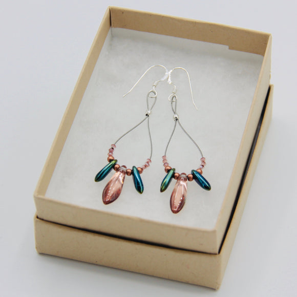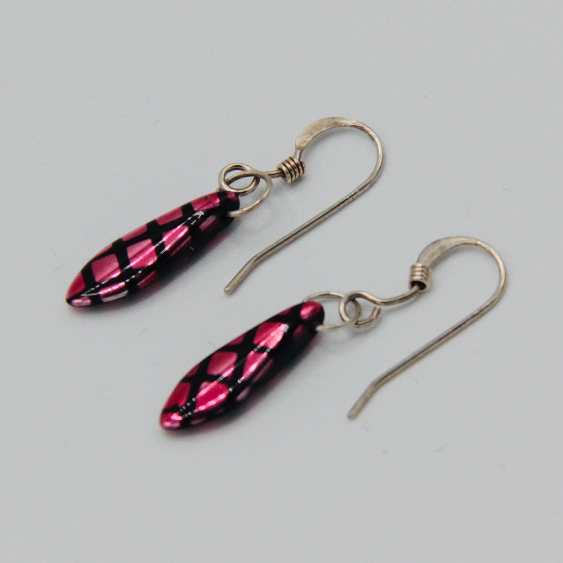 The Jane Earrings represent a simple elegant everyday style. Featuring Czech glass beads and Sterling Silver, these Jane Earring in metallic pink and black crosshatch are perfect warm color accessories. The simple elegance make the Jane Earrings the ultimate outfit elevator.