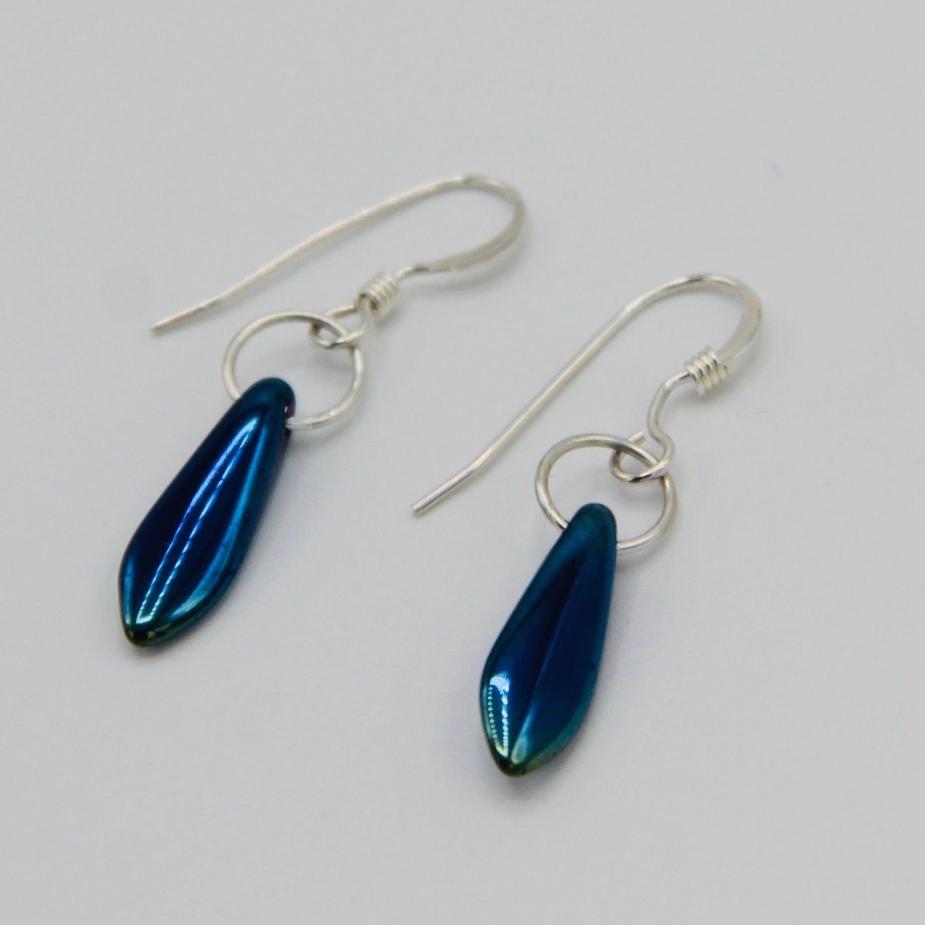 The Jane Earrings represent a simple elegant everyday style. Featuring Czech glass beads and Sterling Silver, these Jane Earring are fun shiny iris blue color. The simple elegance make the Jane Earrings the ultimate outfit elevator. The matching Anna and Rebecca necklace as well as Wendy ring are listed separately.
