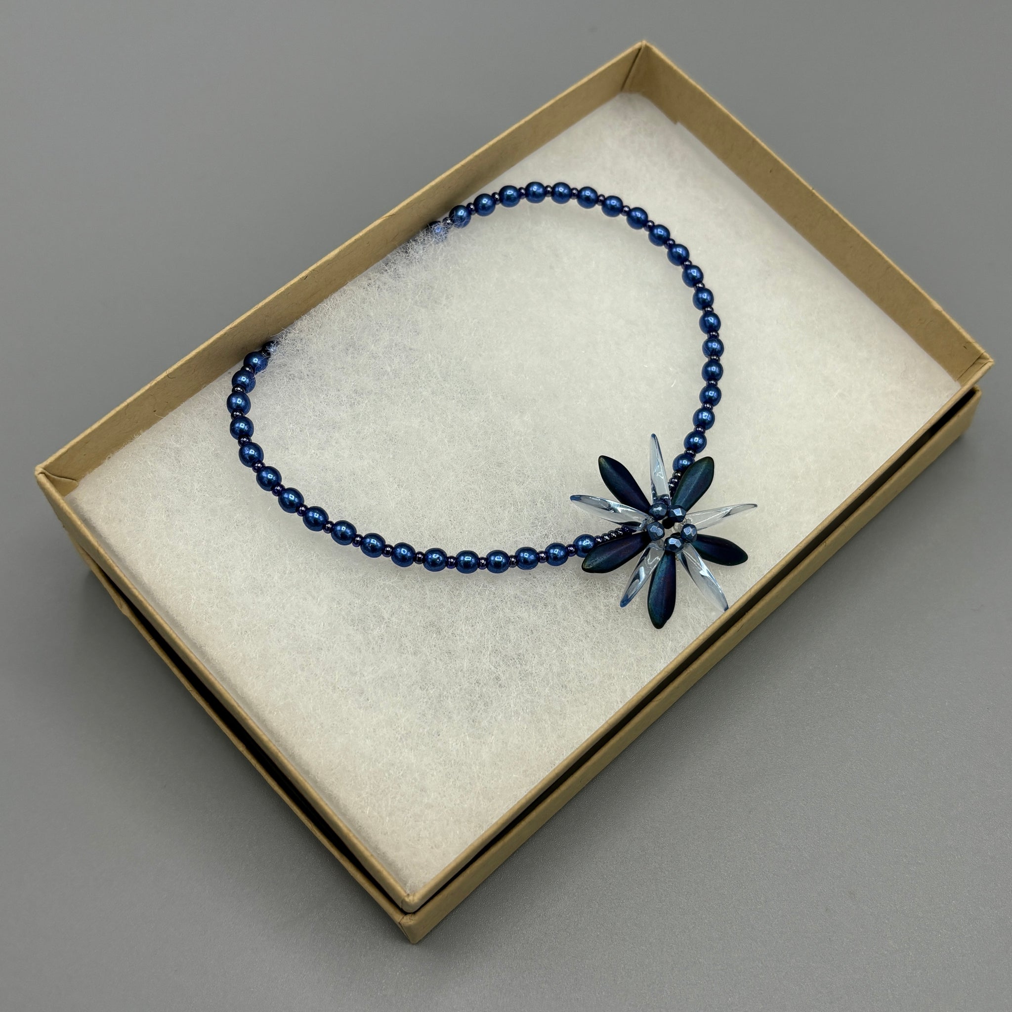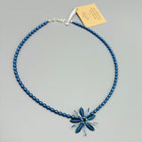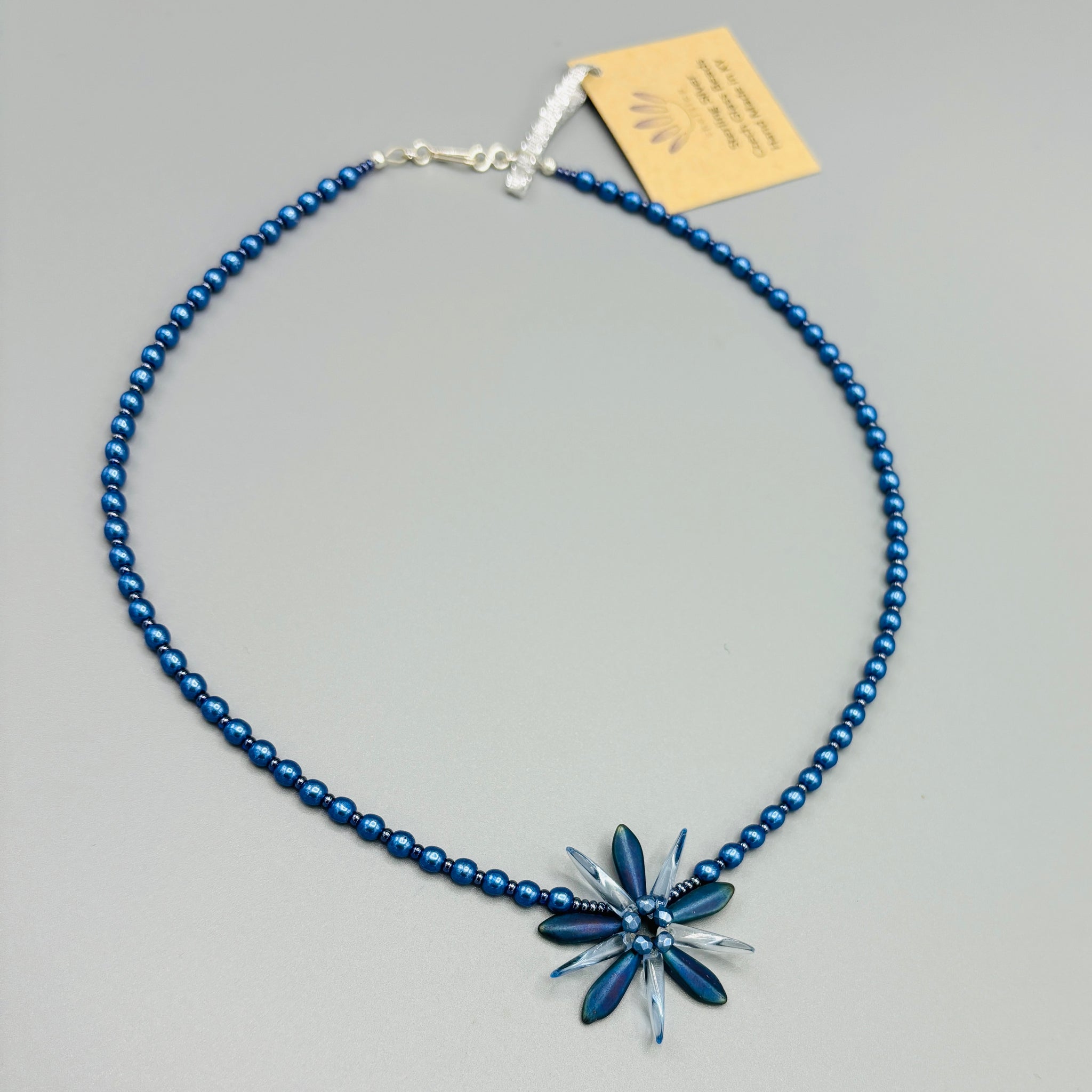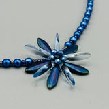 Elizabeth Beaded Necklace with Matte Blue Flower and Pearls