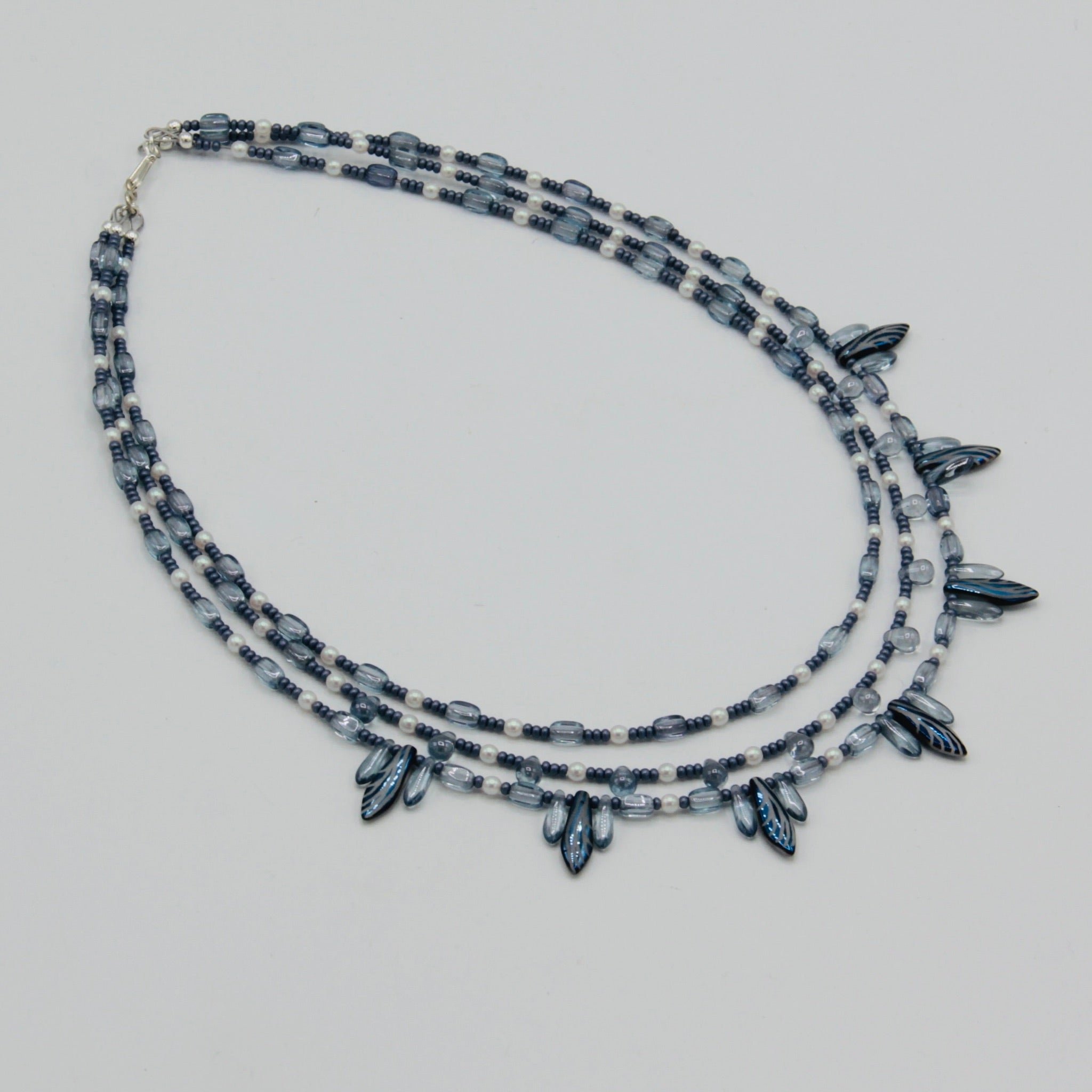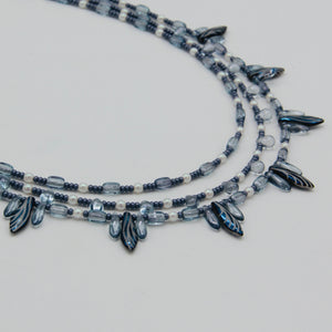 Rebecca Beaded Multistrand Necklace in Smoky Blue with Laser Etched Beads