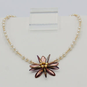 Perfect your festive look with a new twist of pearl necklace. Featuring a single Shelalee signature beaded flower with beaded strand and Sterling Silver closure, it's a perfect necklace for any occasion. There are multiple options for complementing earrings in the same colors palette, you can choose from Eileen, Natalie, or Laura earrings, listed separately.