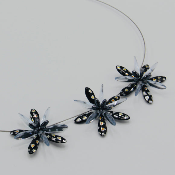 Wendy Ring in Black and Red with Blue Metallic Polka Dots
