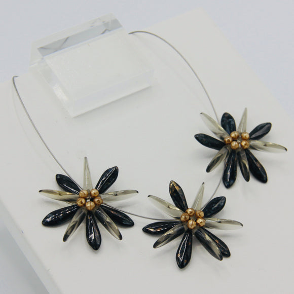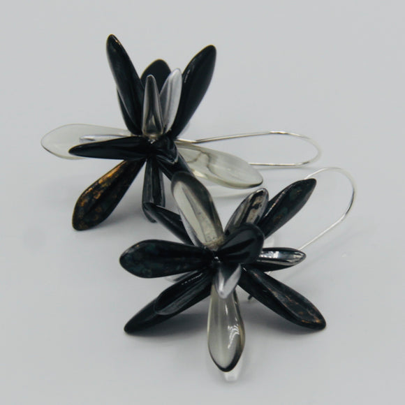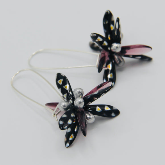 Natalie Earrings in Black Stone Gray with Silver and a Touch of Purple