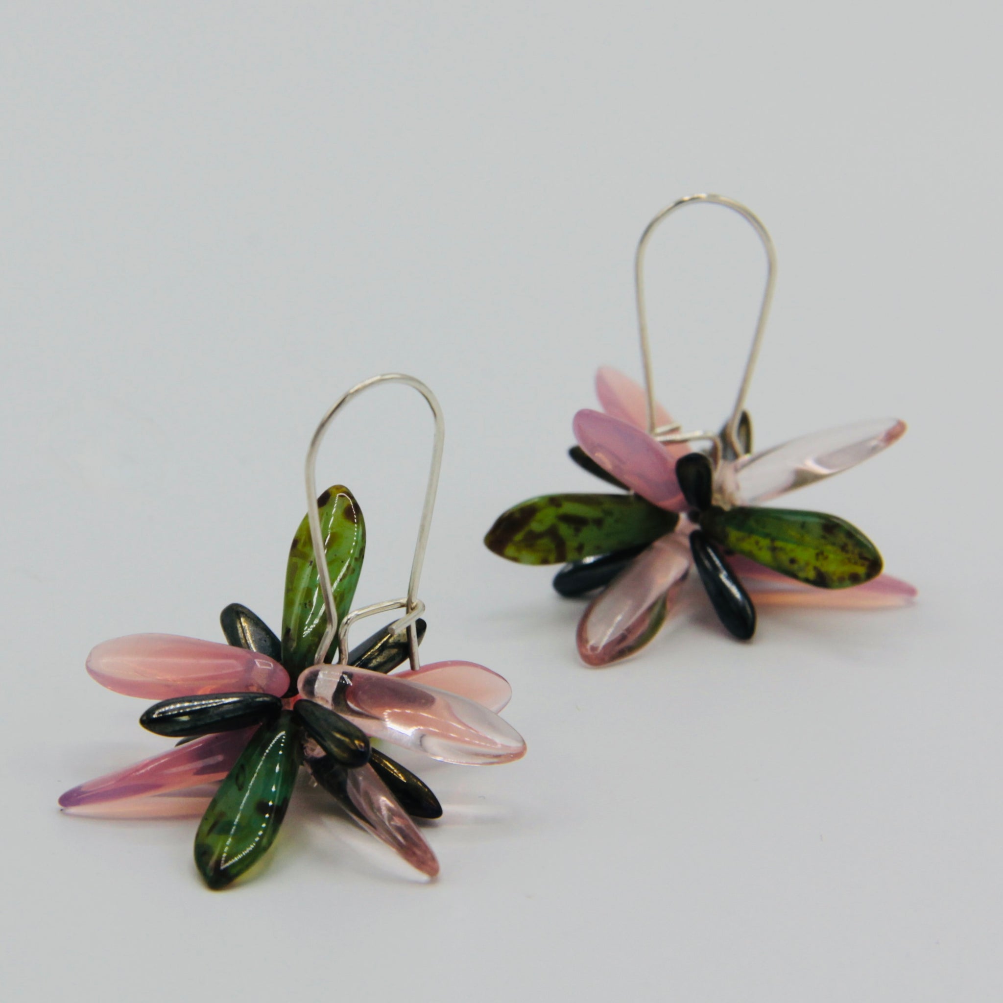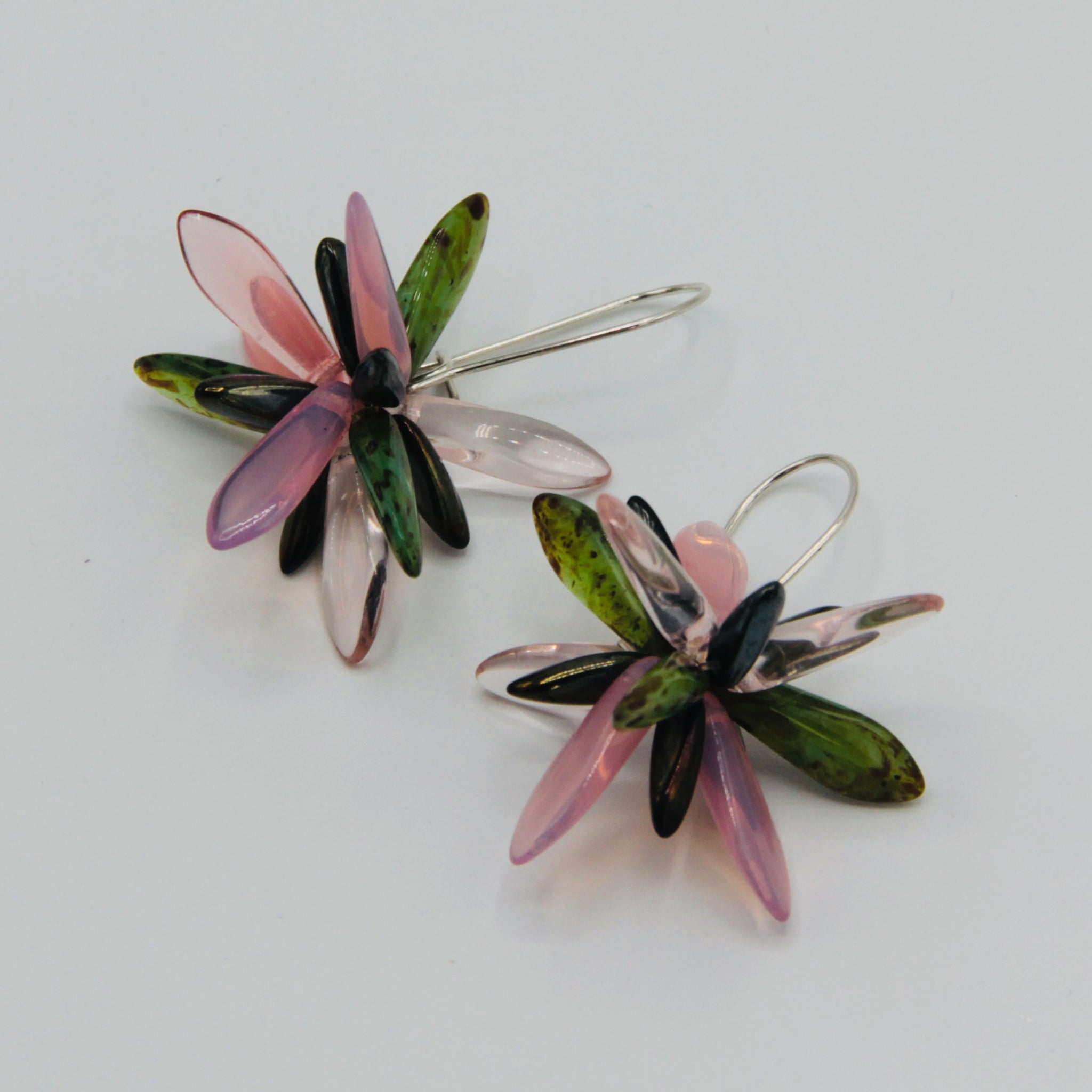 Eileen Earrings in Pink and Stone Green with Dark Accents