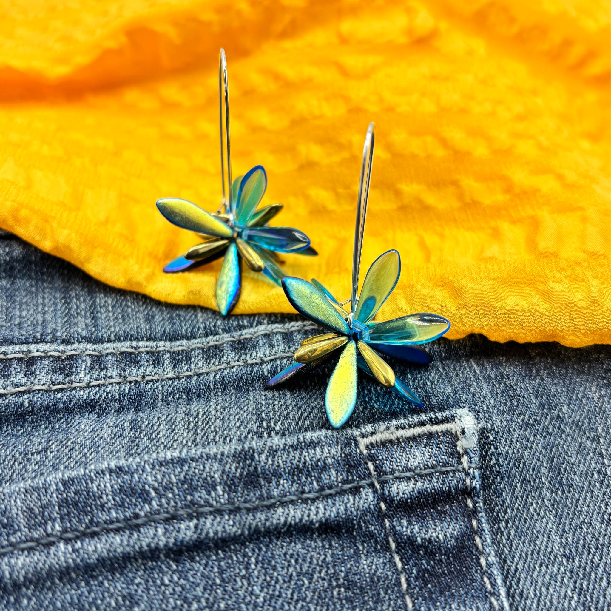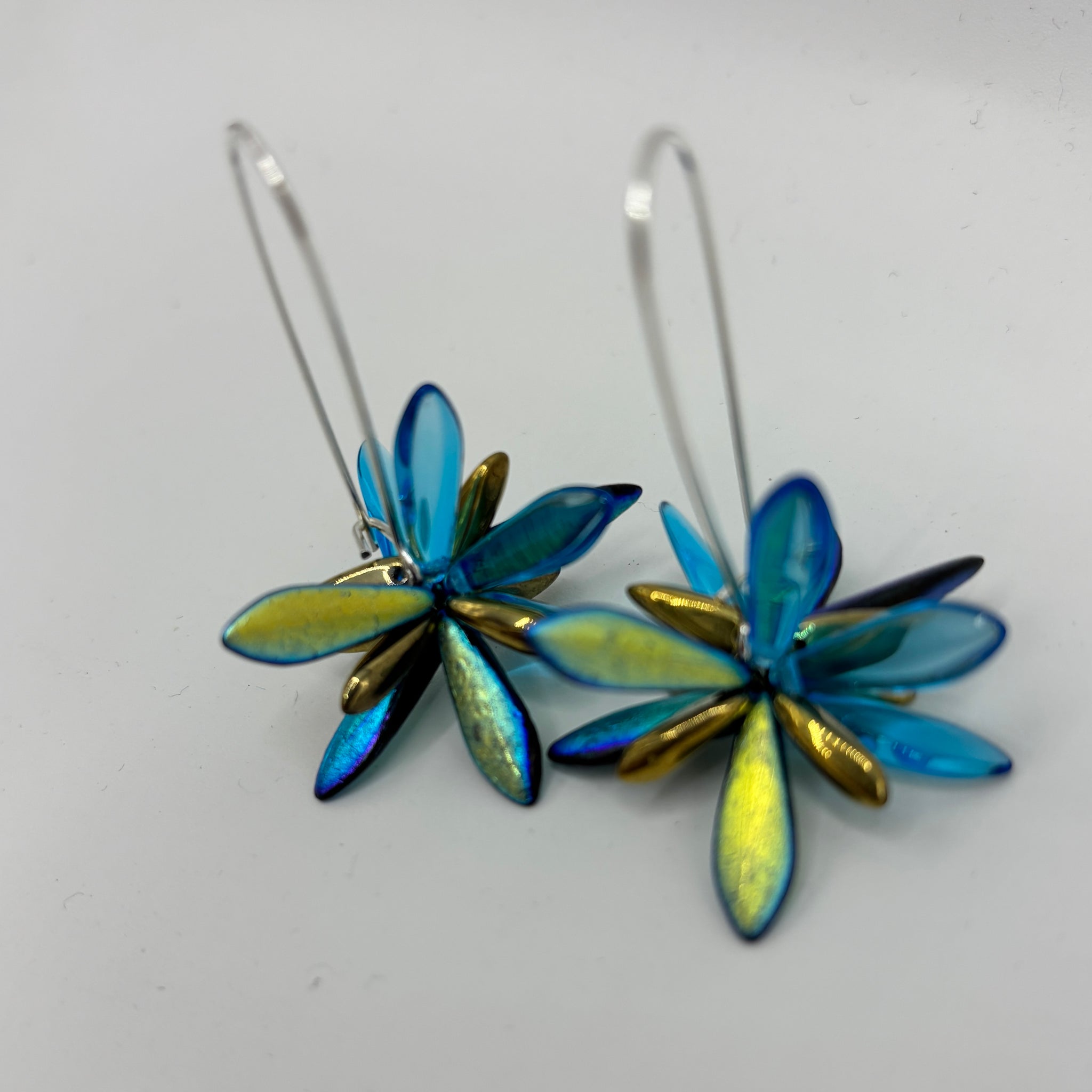 Eileen Earrings in Turquoise, Shiny Blue and Golden