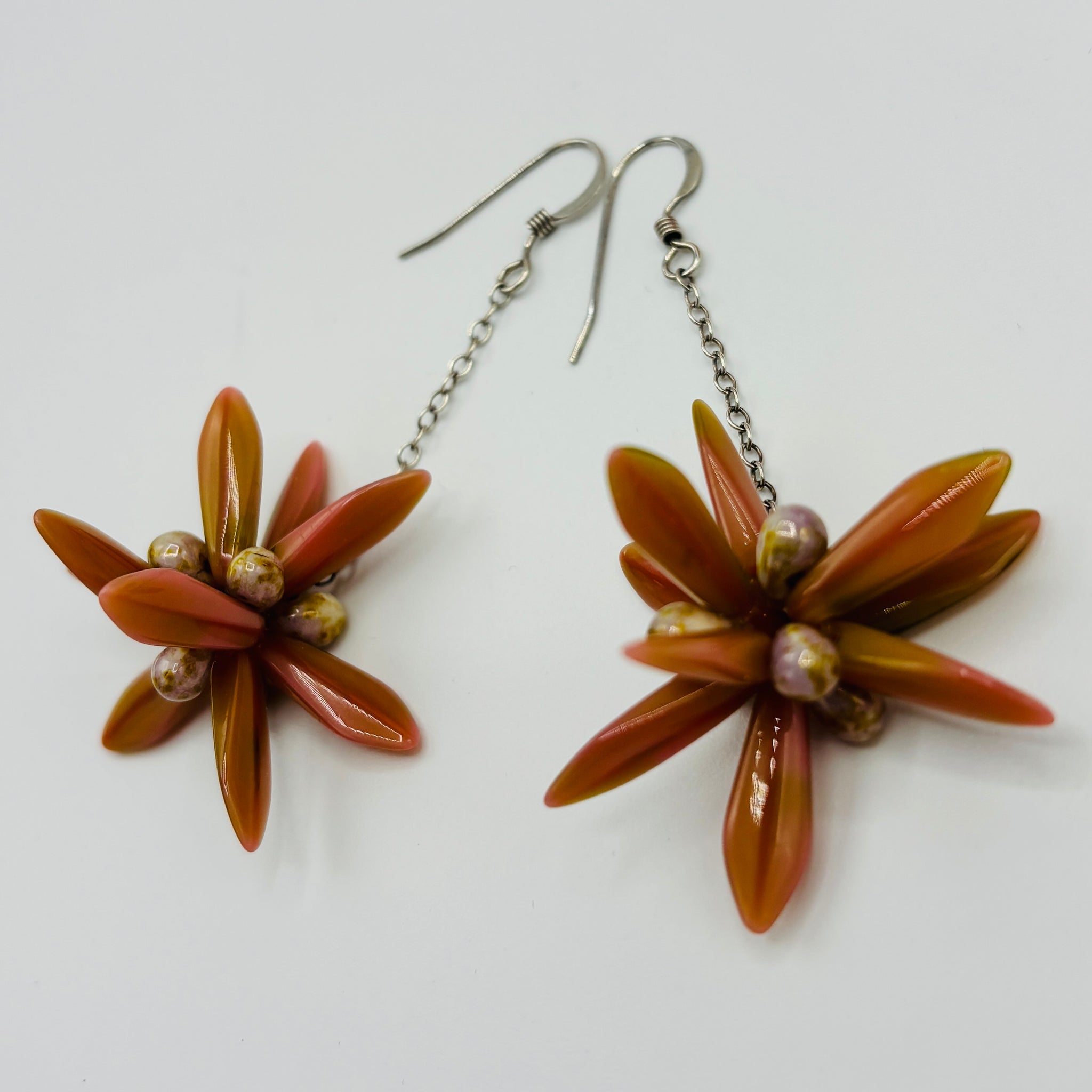 Laura Earrings in Coral Pink with Olive Green Undertone and Silver Accent