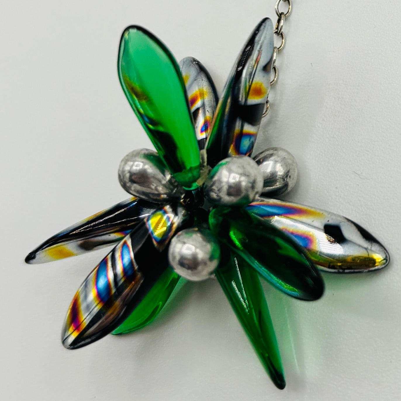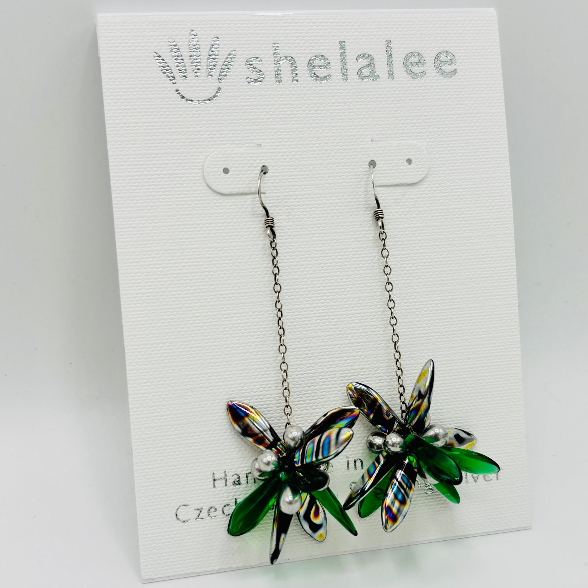 Laura Earrings in Green, Metallic Black and Silver