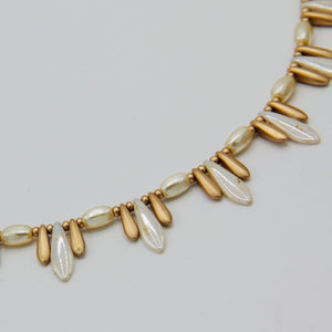The Rebecca Necklace brings a splash of fun to your collection! Crafted with a delightful mix of pearl white Czech glass beads and finished with a Sterling Silver clasp, this necklace is both vibrant and versatile. The version shown measures about 18 inches, offering a medium-long length that’s perfect for adding an elegant touch to any look.