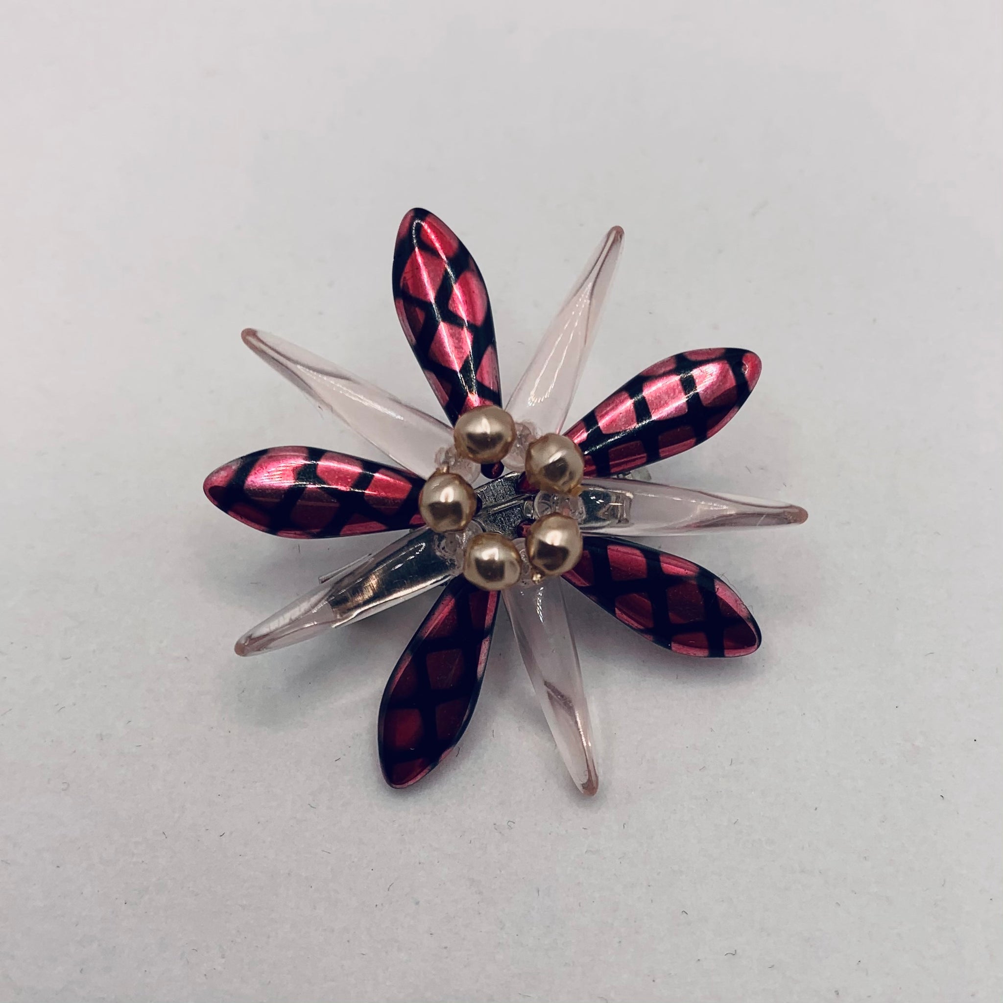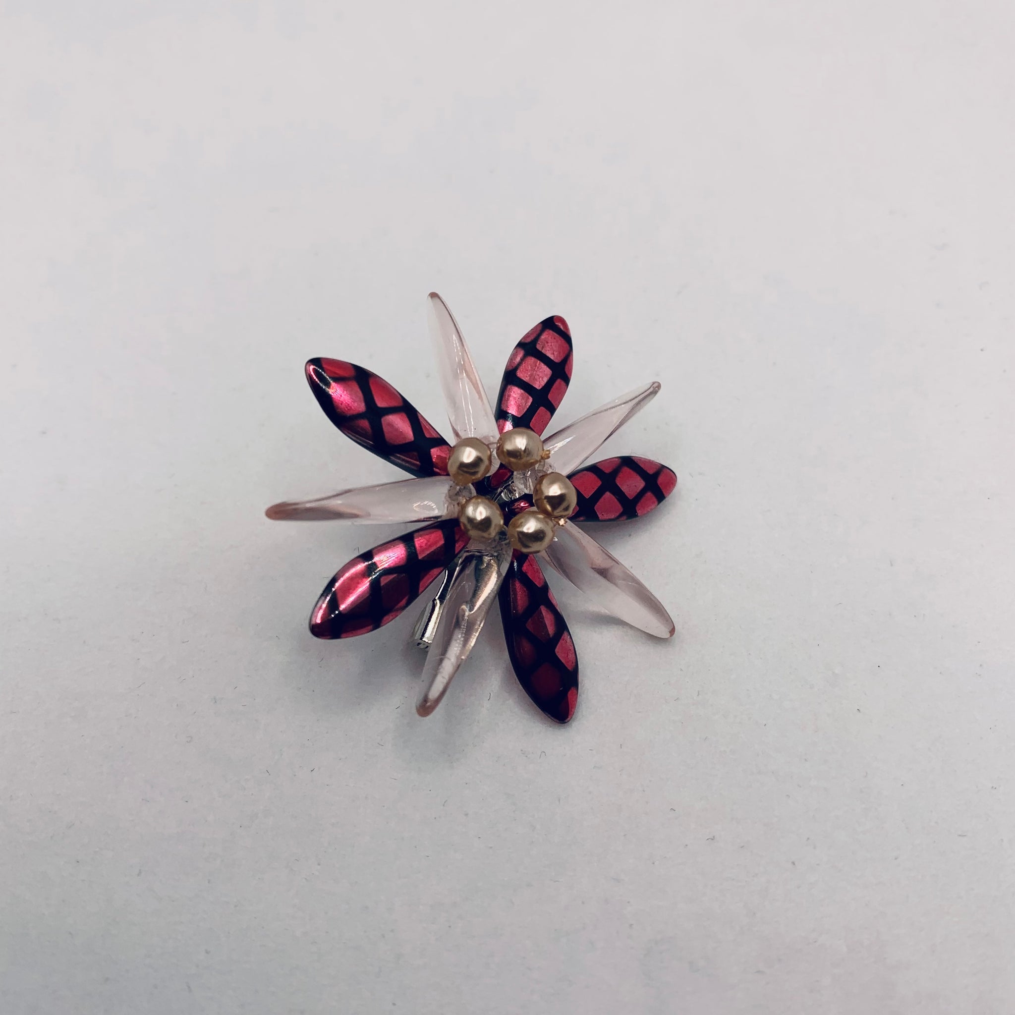 Made to add a bit of color to your coat or hat. The Madeleine pin is handmade beaded flower shape in variety of colors.