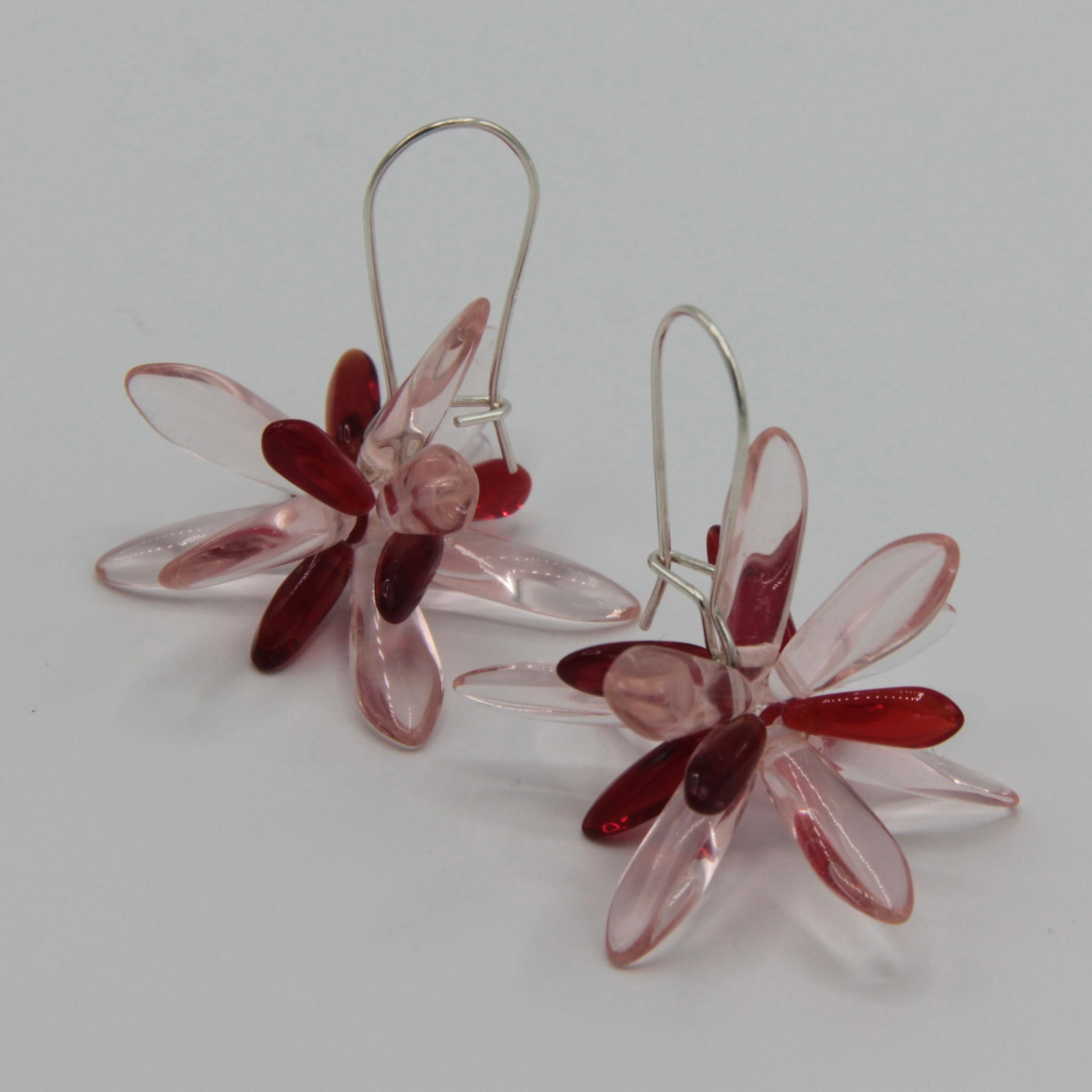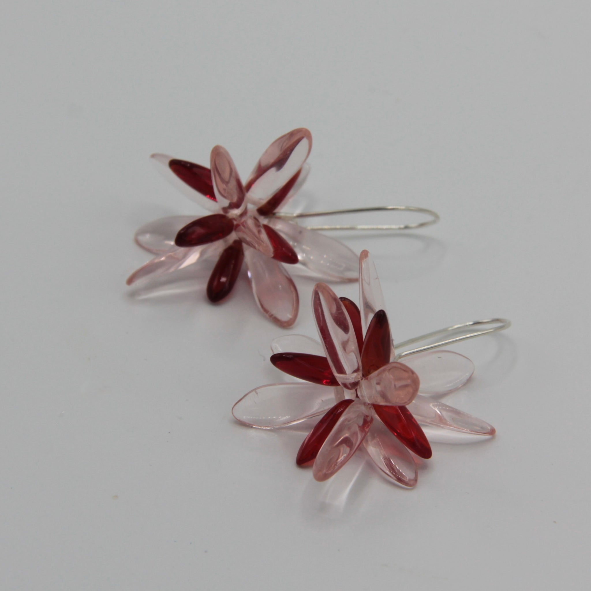 Look your best in these Eileen earrings in transparent pink with small red accent beads. These Eileen earrings are the perfect complement to any outfit from formal business to blue jeans.