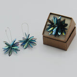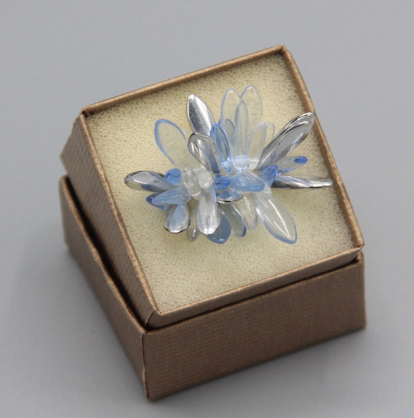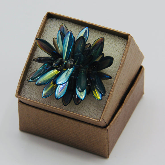Sophisticated and extravagant, this statement ring is designed to captivate attention. With a bold presence, it effortlessly adds elegance to any look - perfect for those who appreciate uniqueness and timeless beauty. Czech glass dagger beads are meticulously selected and elegantly embraced by American Sterling Silver components, strung together on a durable elastic cord made in the USA. To complete the experience, this exquisite piece is nestled in a lovable box crafted from 100% recycled cardboard, also made in the USA.