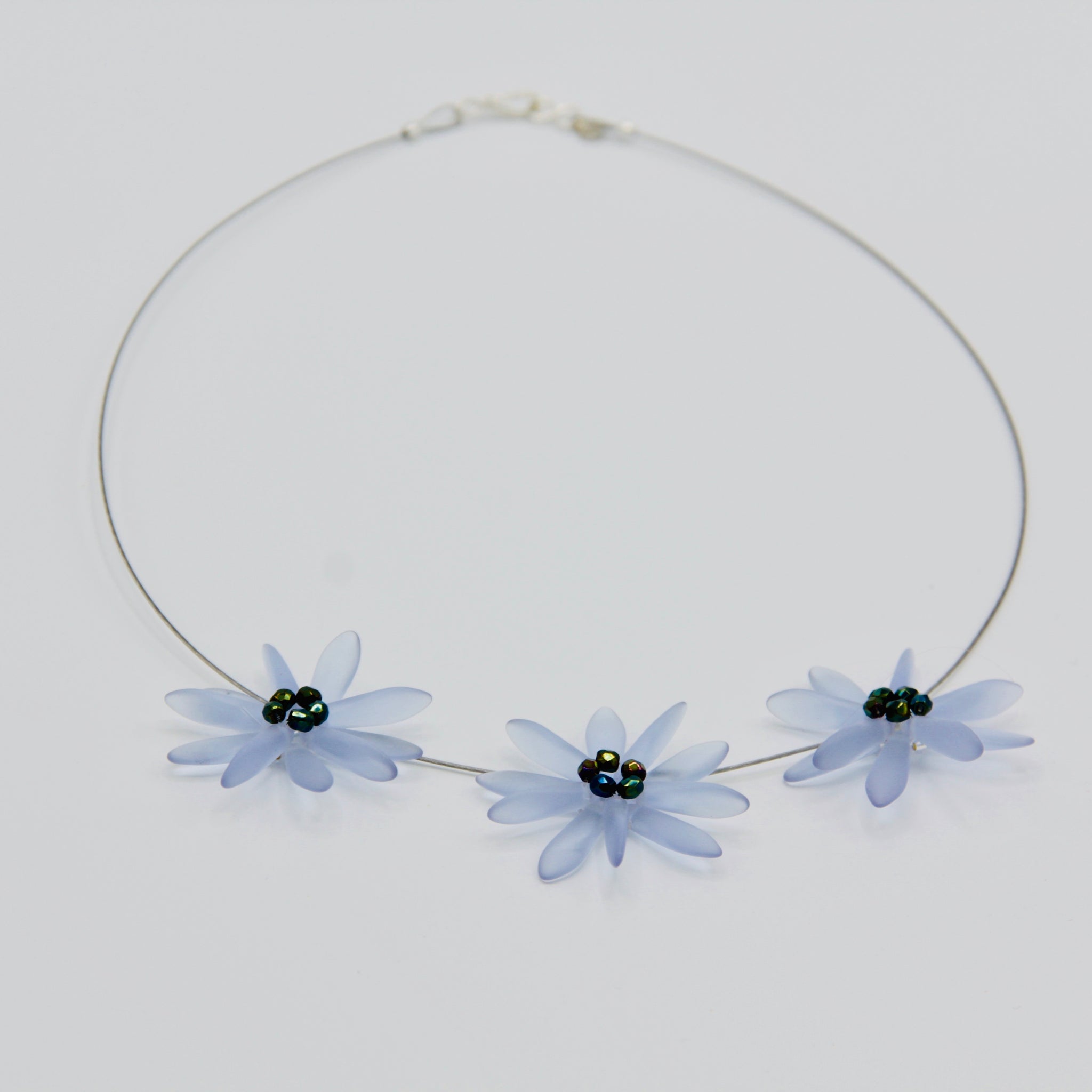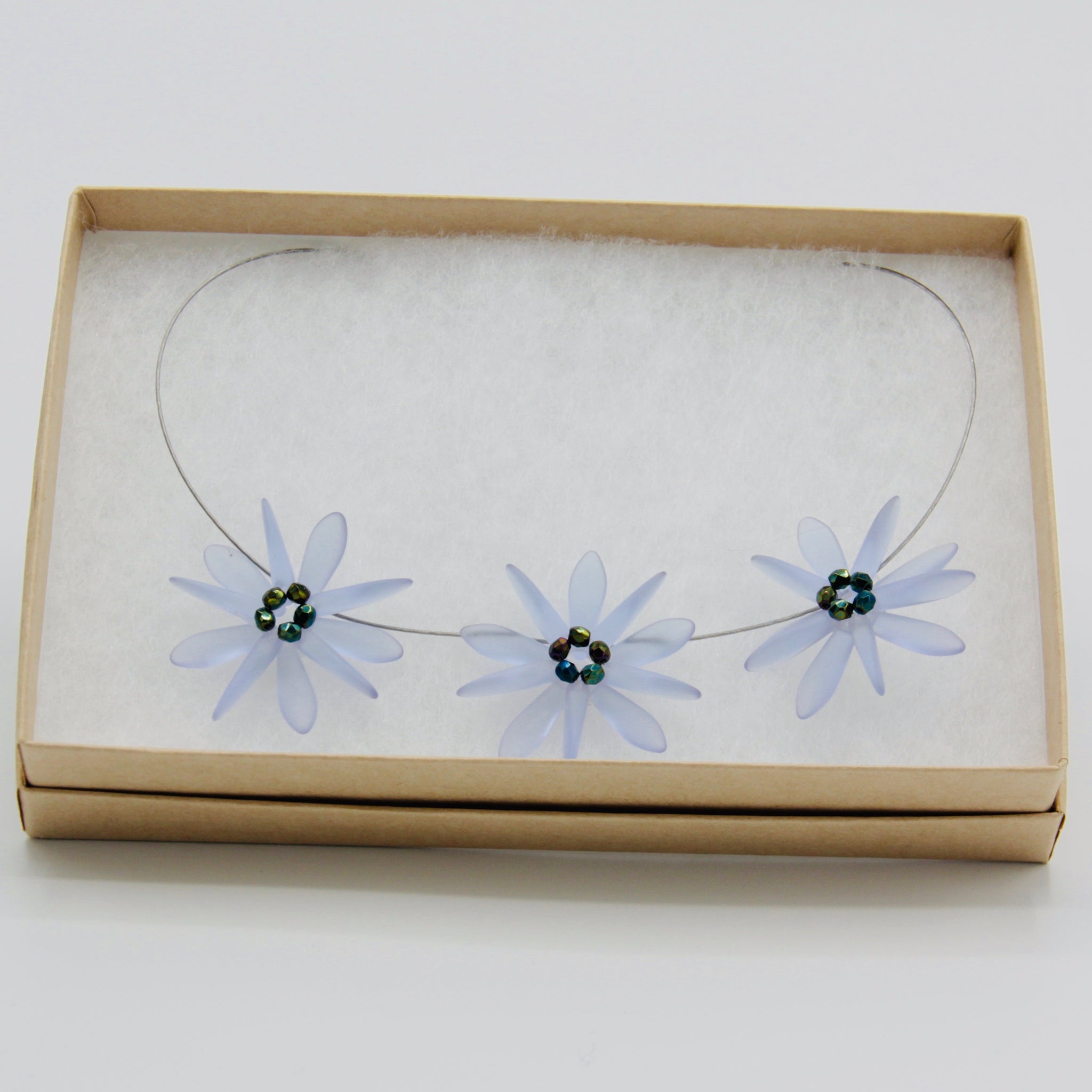 Anna Necklace in Frosty Blue with Shiny Olive Green Accents