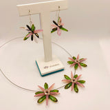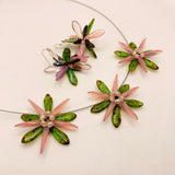 Dress it up with Anna Necklace of Shelalee signature style including handmade beaded flower designs. Featuring Czech glass beads in pink and stone finish green, this is a statement necklace that can take you from the office to an evening out with ease. It is paired nicely with matching Emma earrings as featured in the picture of the whole set.