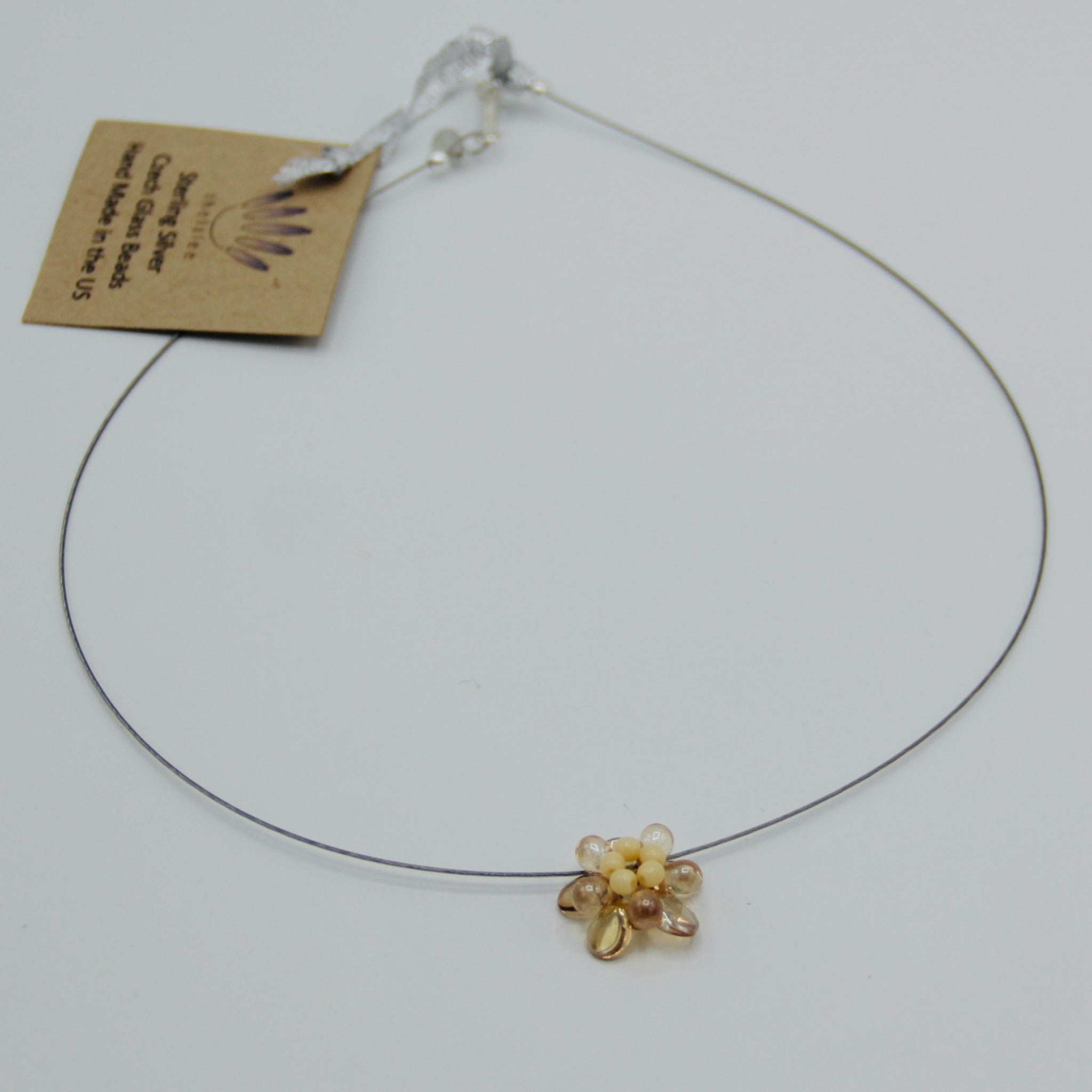 The Annette Necklace in Golden Brown is a playful accessory perfect for any time of year. Crafted with Czech Glass Beads and Sterling Silver, this charming necklace adds a touch of joy to any ensemble.