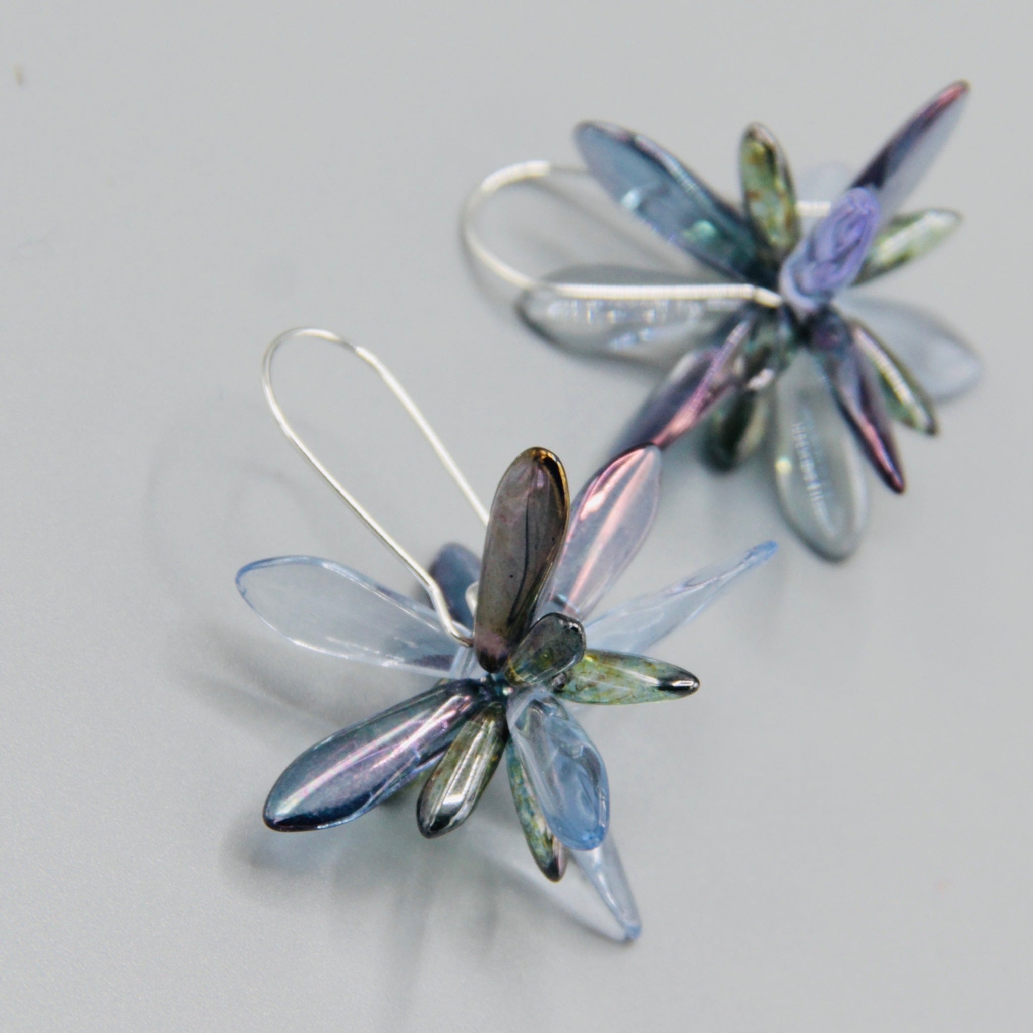If you are looking for a fun earring that you can wear for any occasion, Eileen Earrings are your best choice.  Featuring Czech glass beads and Sterling Silver, these Eileen Earrings feature light blue and gray luster beads. The Eileen Earrings are made to be noticed, no matter where you take them.