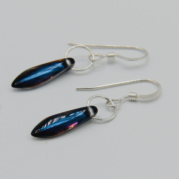 The Jane Earrings represent a simple elegant everyday style. Featuring Czech glass beads and Sterling Silver, the Jane Earrings in a royal blue shiny finish with a silver backing are just lovely.