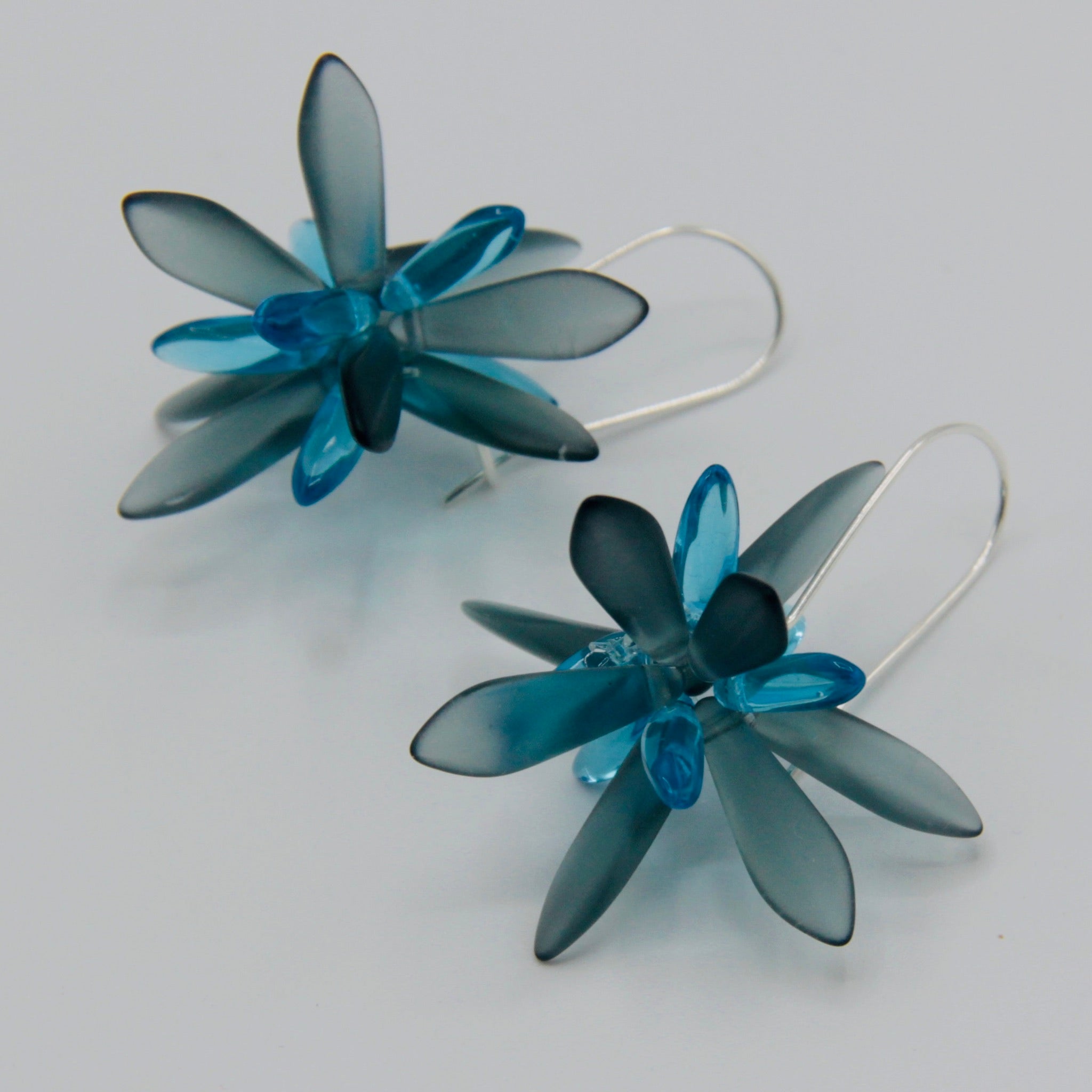 Perfect for a blue lover! These Eileen earrings feature Czech Glass beads in two different tones of blue with both transparent and matte finishes for nice light effect.  These Eileen earrings are the perfect complement to Anna or Elizabeth necklaces, listed separately.  Made to order, please, select your preferred length during checkout. Pictured here is the shorter version, 1 inch.