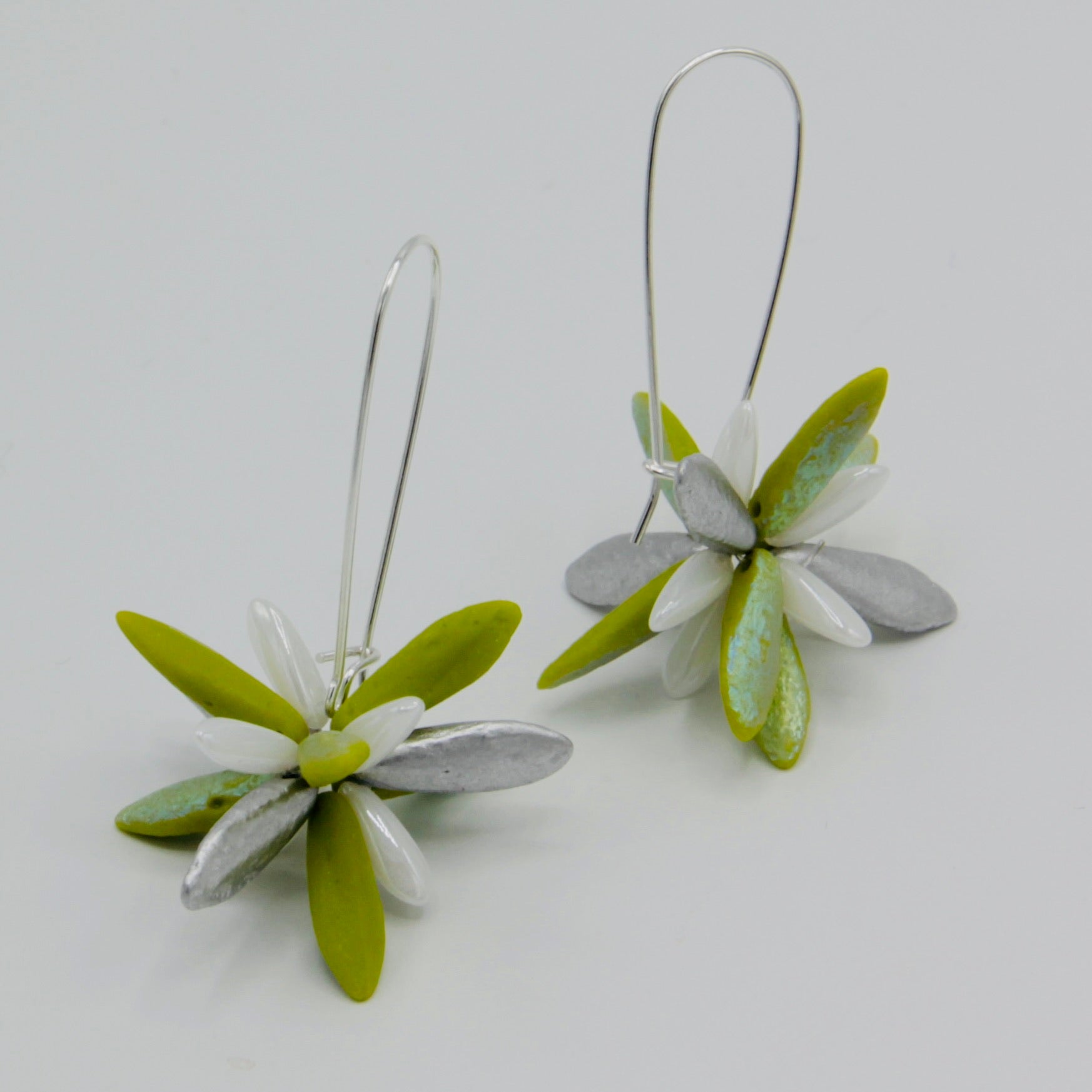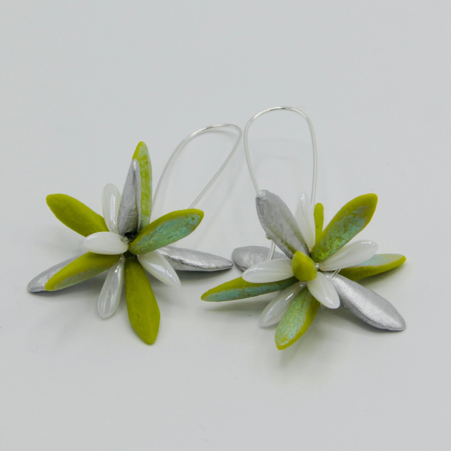 If you are looking for a fun and versatile pair of earrings, the Eileen earrings are the perfect choice. Featuring stunning green and silver colored Czech glass beads and sterling silver earring wires, they add a touch of elegance to any outfit. Designed to stand out, these earrings will make an impression wherever you go.