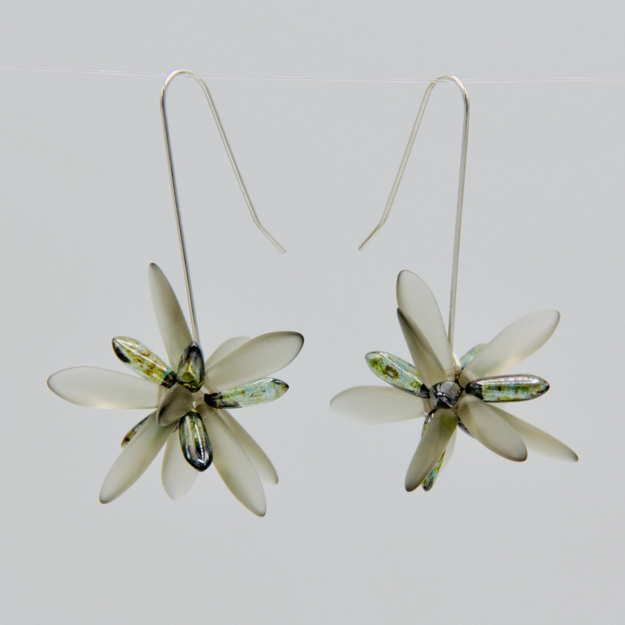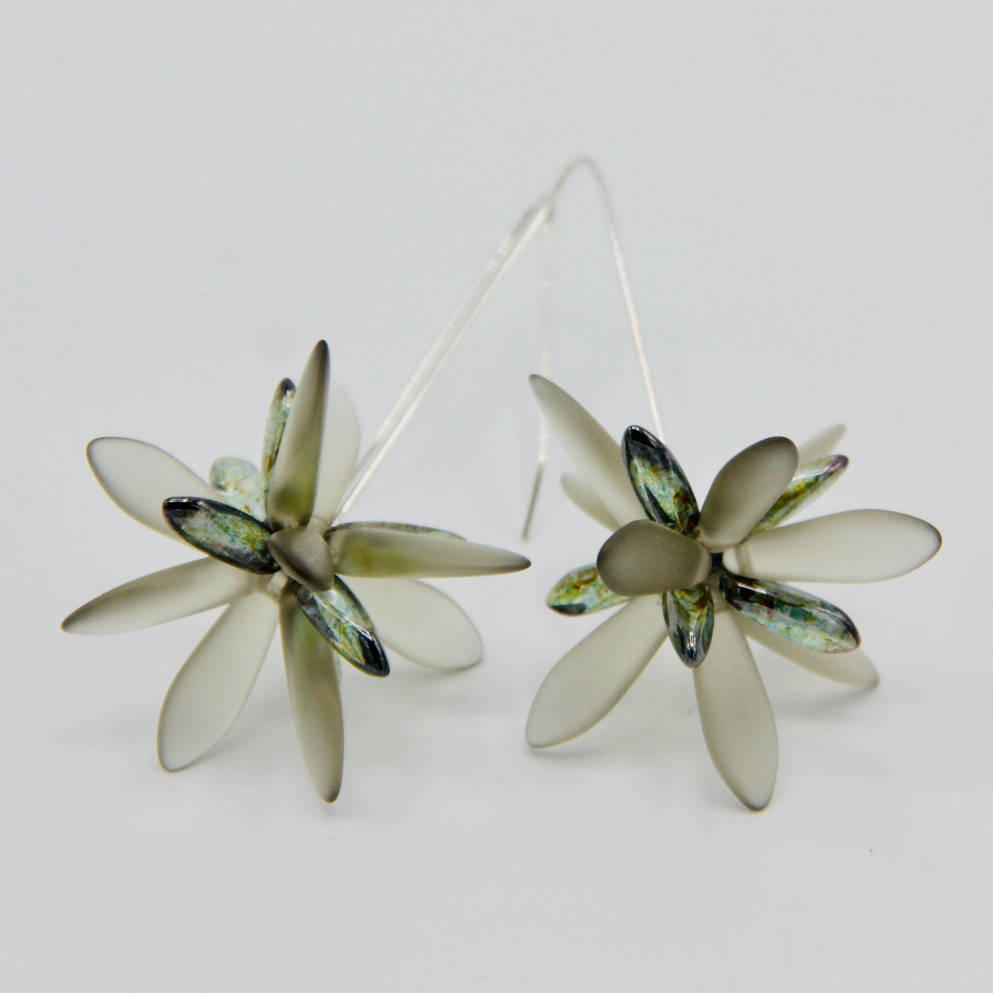 Natalie Earrings in Matte Gray with Olive Green