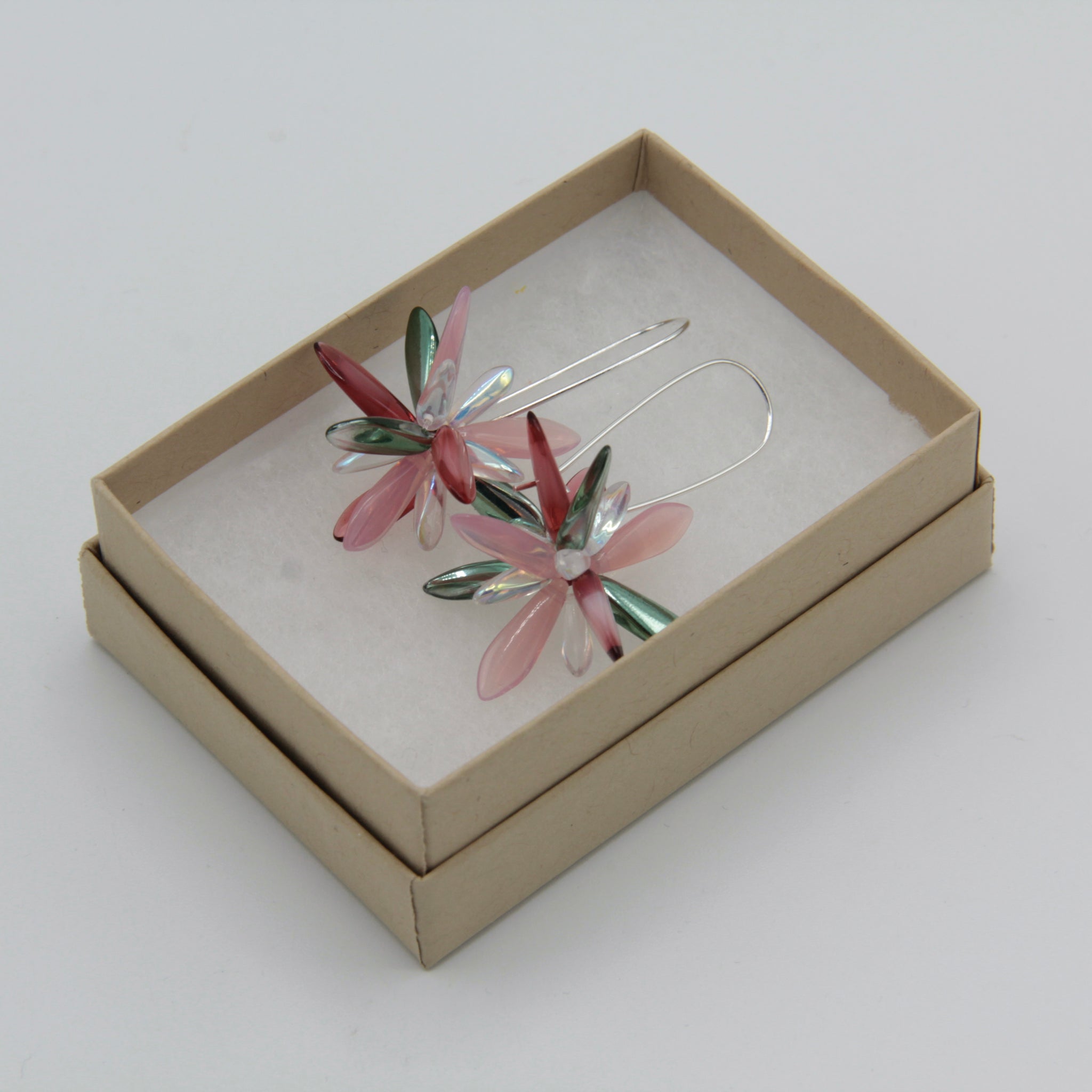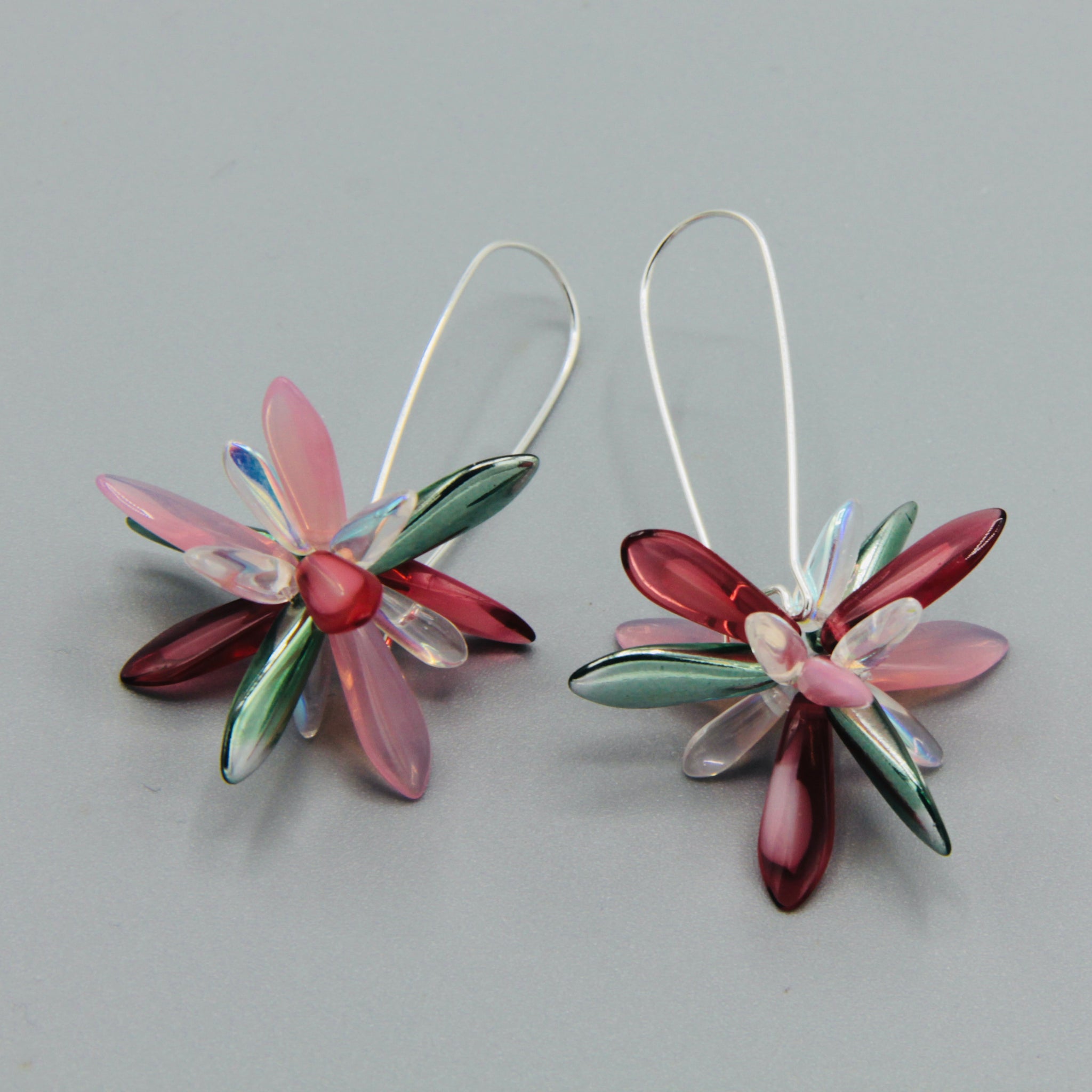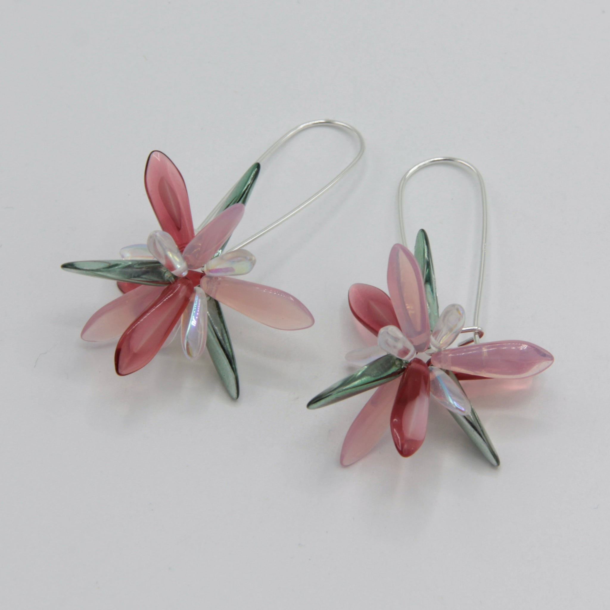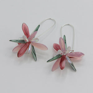 Eileen Earrings in Pink, Pinkish Red, Green and Shiny Transparent Accent