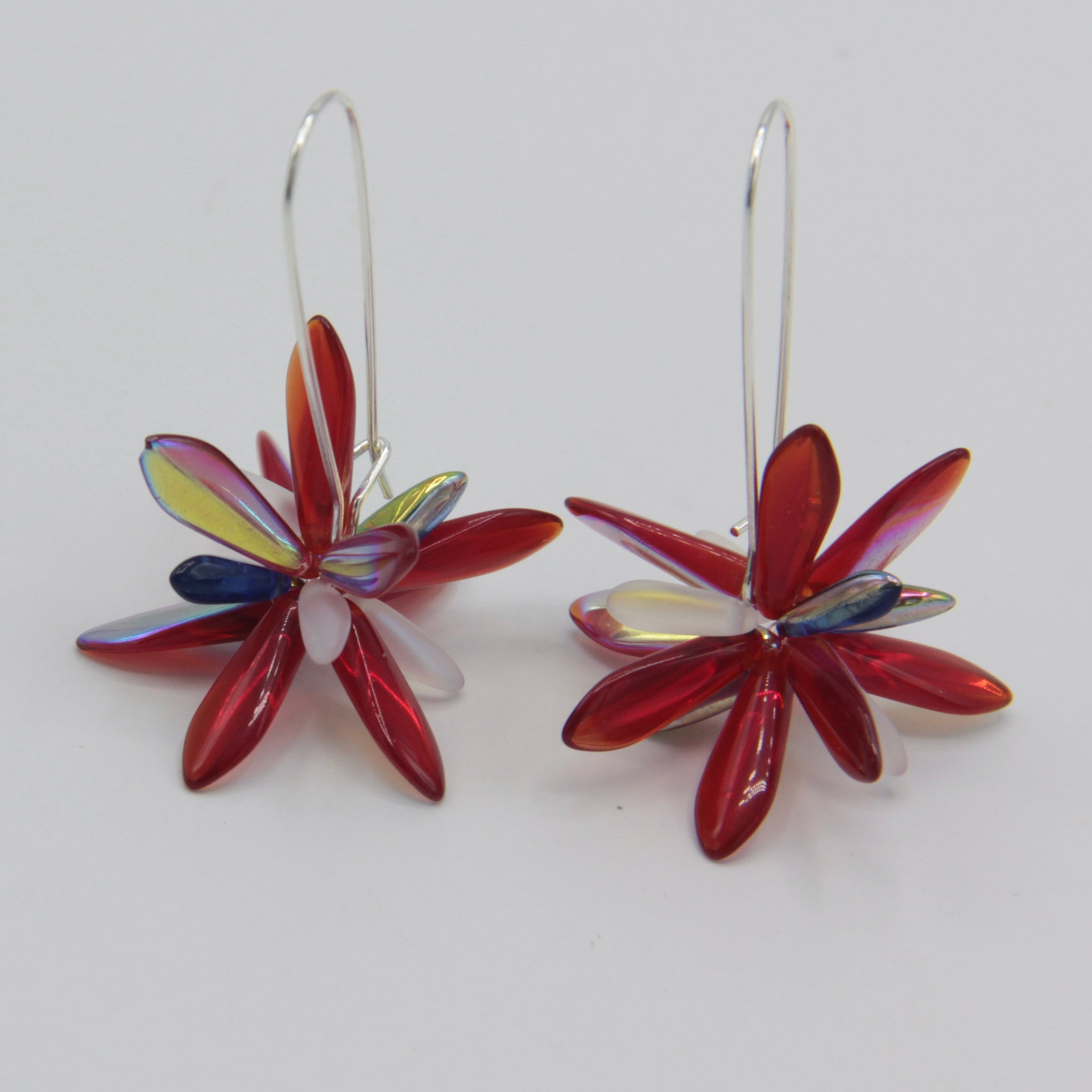 Are you looking a versatile and enjoyable earrings suitable for a summer event? Look no further than the Eileen Earrings. These earrings showcase shiny red Czech glass beads with matte white and shiny blue accents on Sterling Silver kidney earring wires. The popular Shelalee Eileen Earrings are designed to make a statement, wherever you choose to wear them.