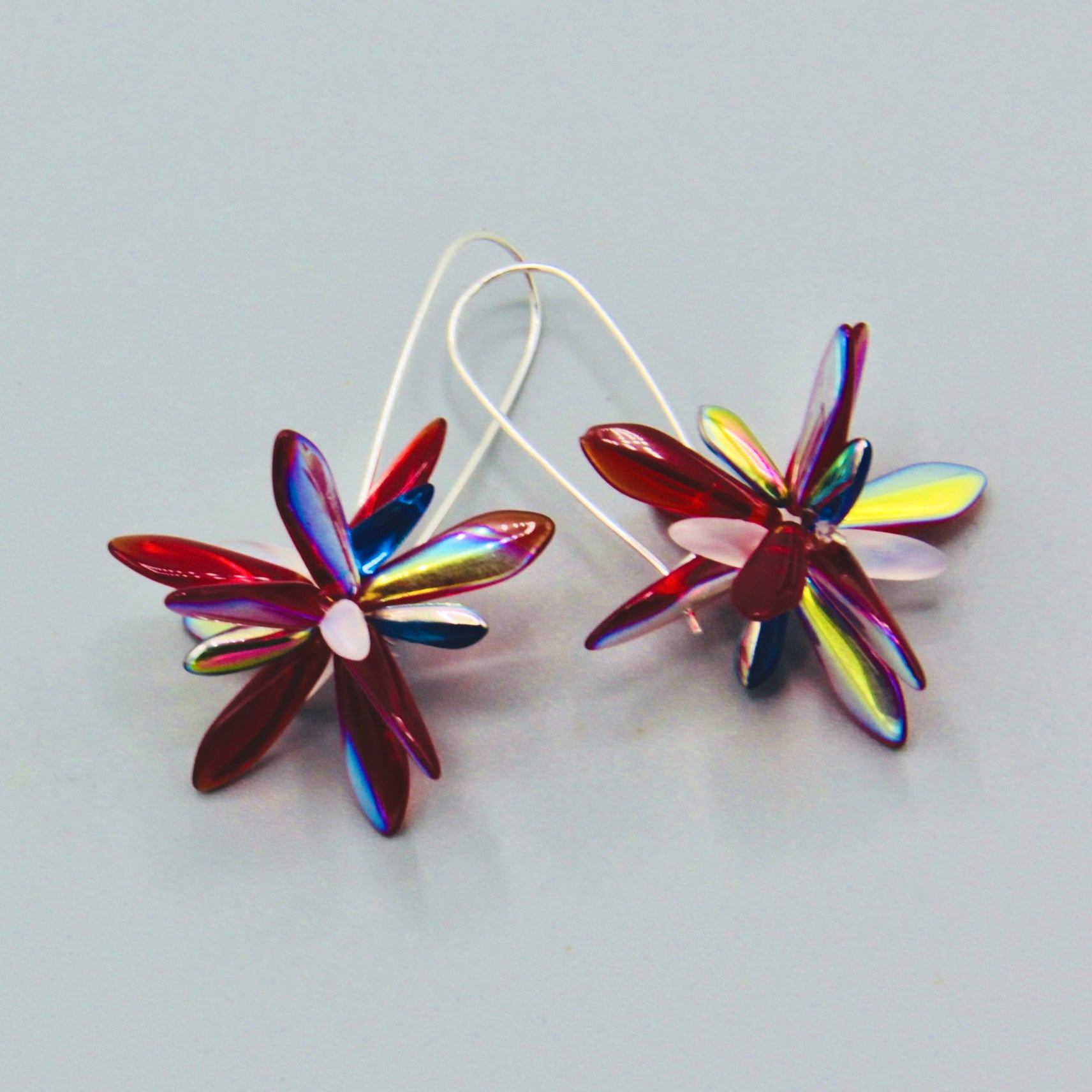 Eileen Earrings in Shiny Red with White and Blue Center