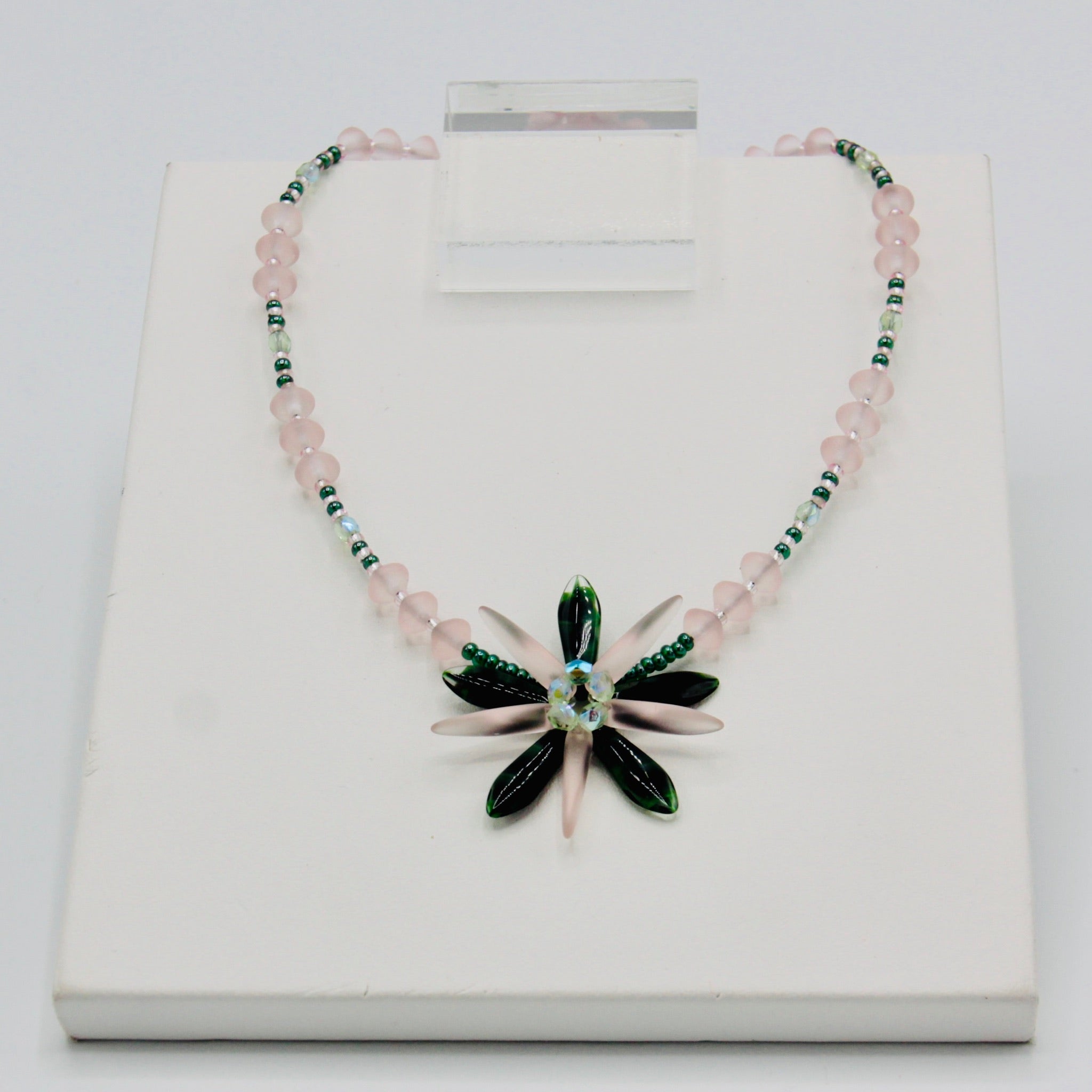 Elizabeth Beaded Necklace in Matte Pink and Green
