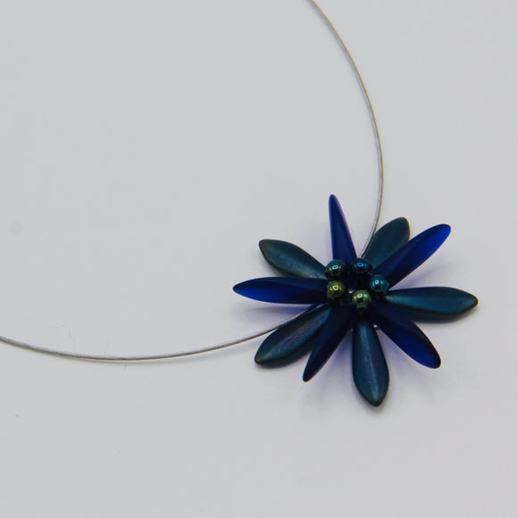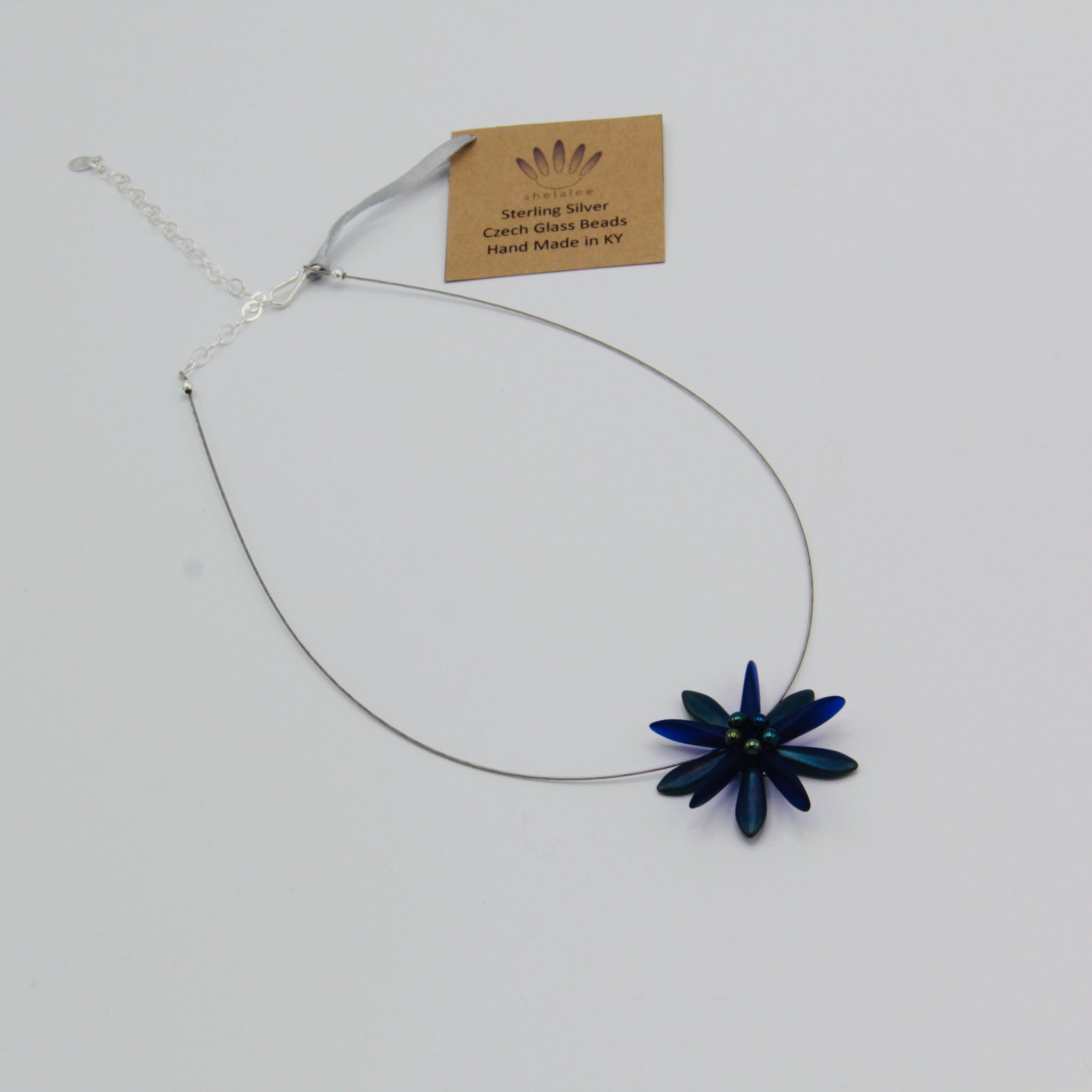 Subtle elegance of the Elizabeth Necklace shines no matter where you take it to have fun. Featuring a single Shelalee signature beaded flower in iris blue on a stainless steel 19-strand wire with Sterling Silver closure, it's a perfect necklace for any occasion. It can be paired with Eileen earrings.