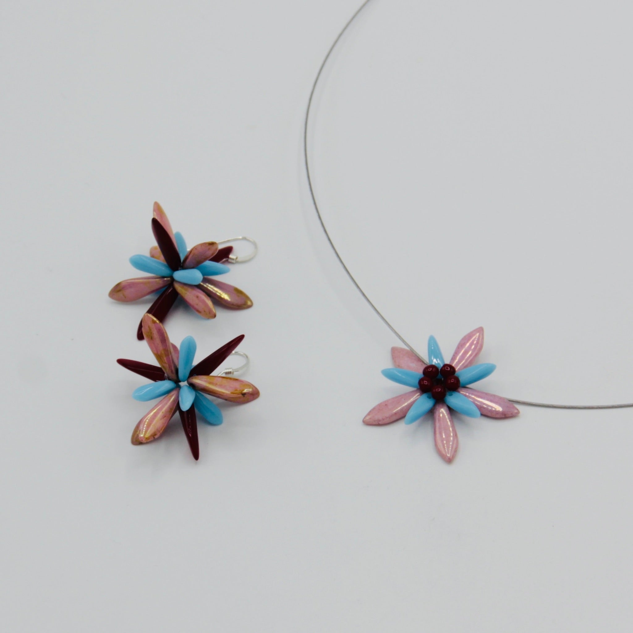 Elizabeth Necklace in Pink, Blue and Deep Red
