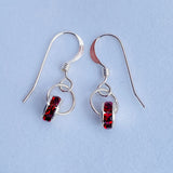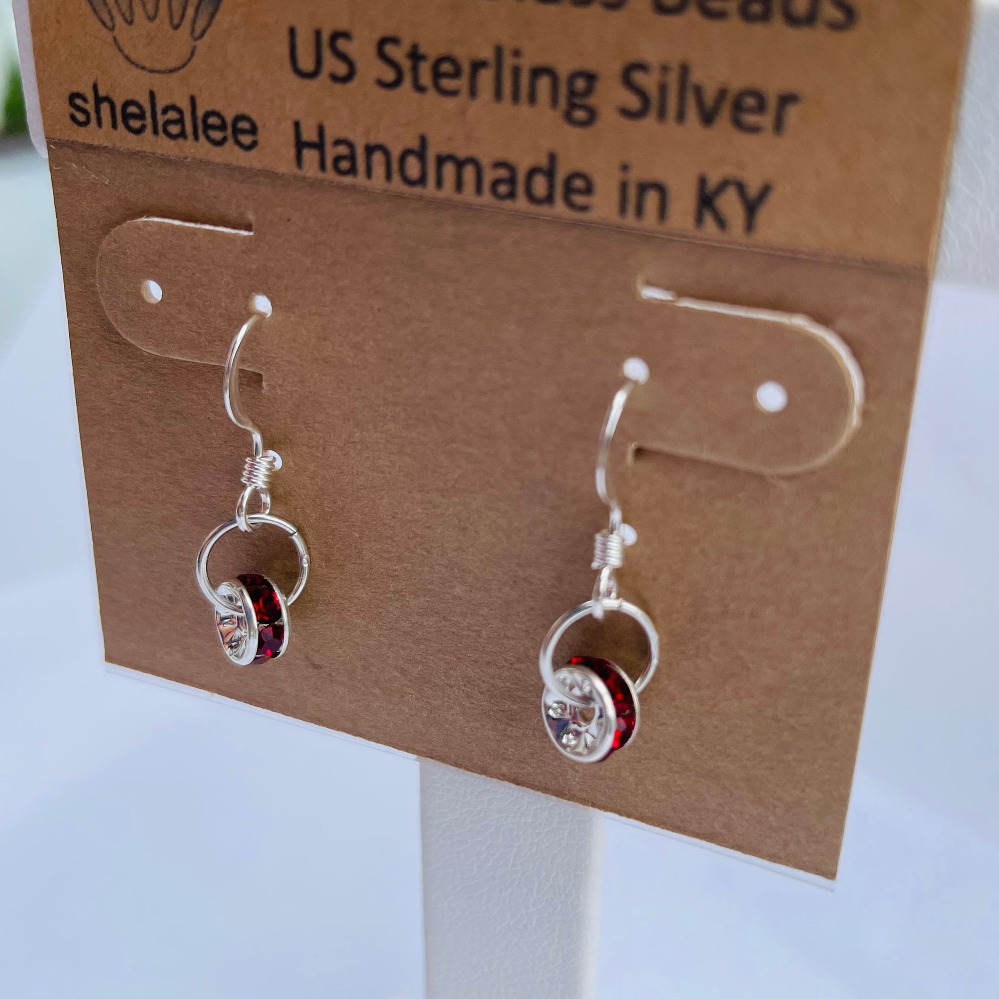 The Emily Earrings represent a simple elegant with a single Rondelle bead in beautiful Czech Preciosa cut glass dangling on Sterling Silver findings. The Emily Earrings are available different colors, this pair features bright red crystals.