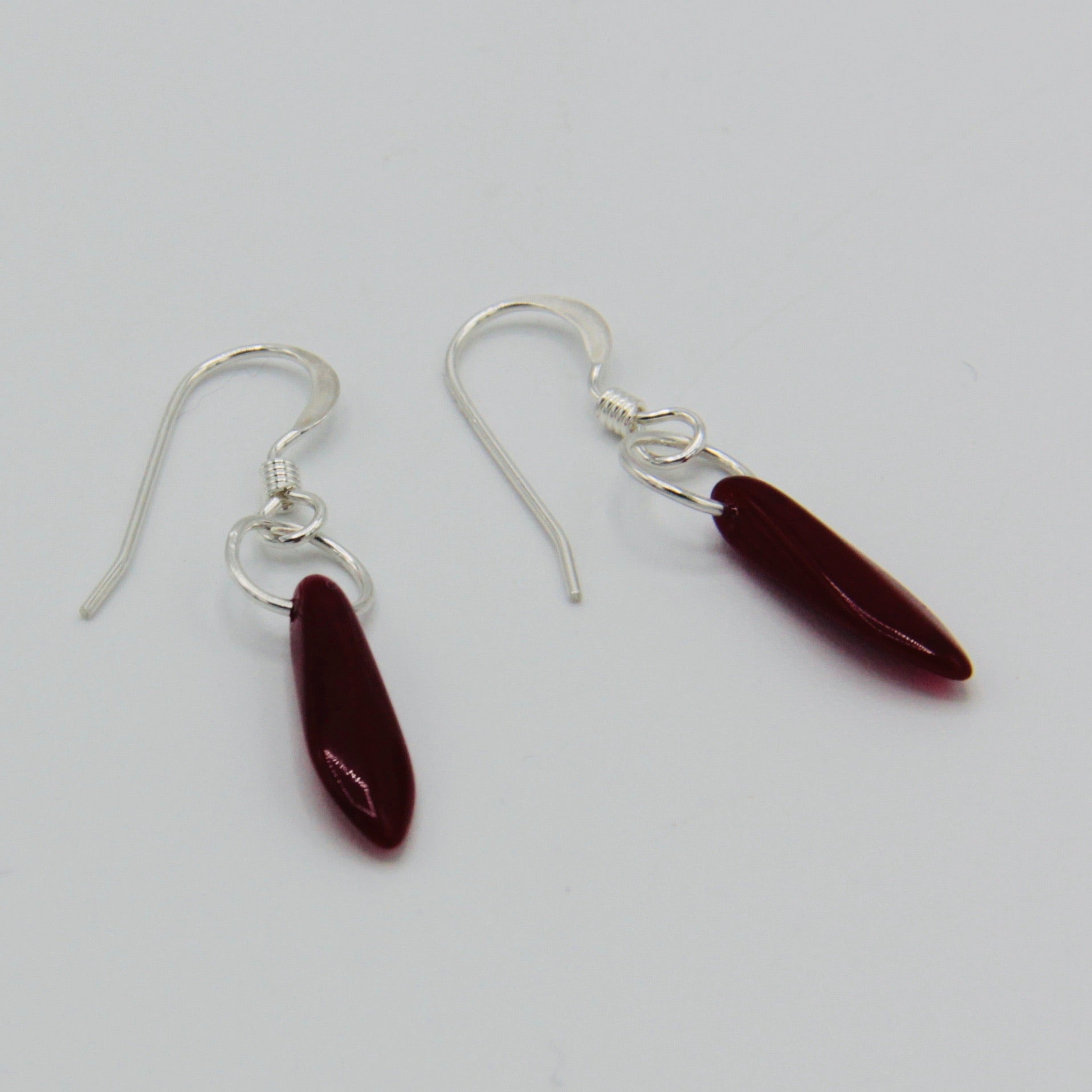 The Jane Earrings represent a simple elegant everyday style. Featuring Czech glass beads and Sterling Silver, these Jane Earring are in deep maroon red. The simple elegance makes the Jane Earrings an easy choice for everyday wear especially when paired with a matching Anna necklace.