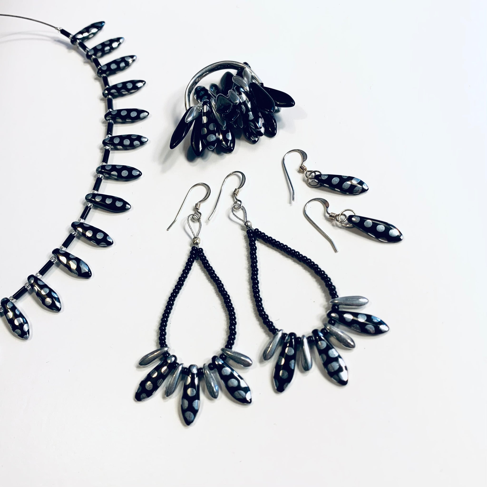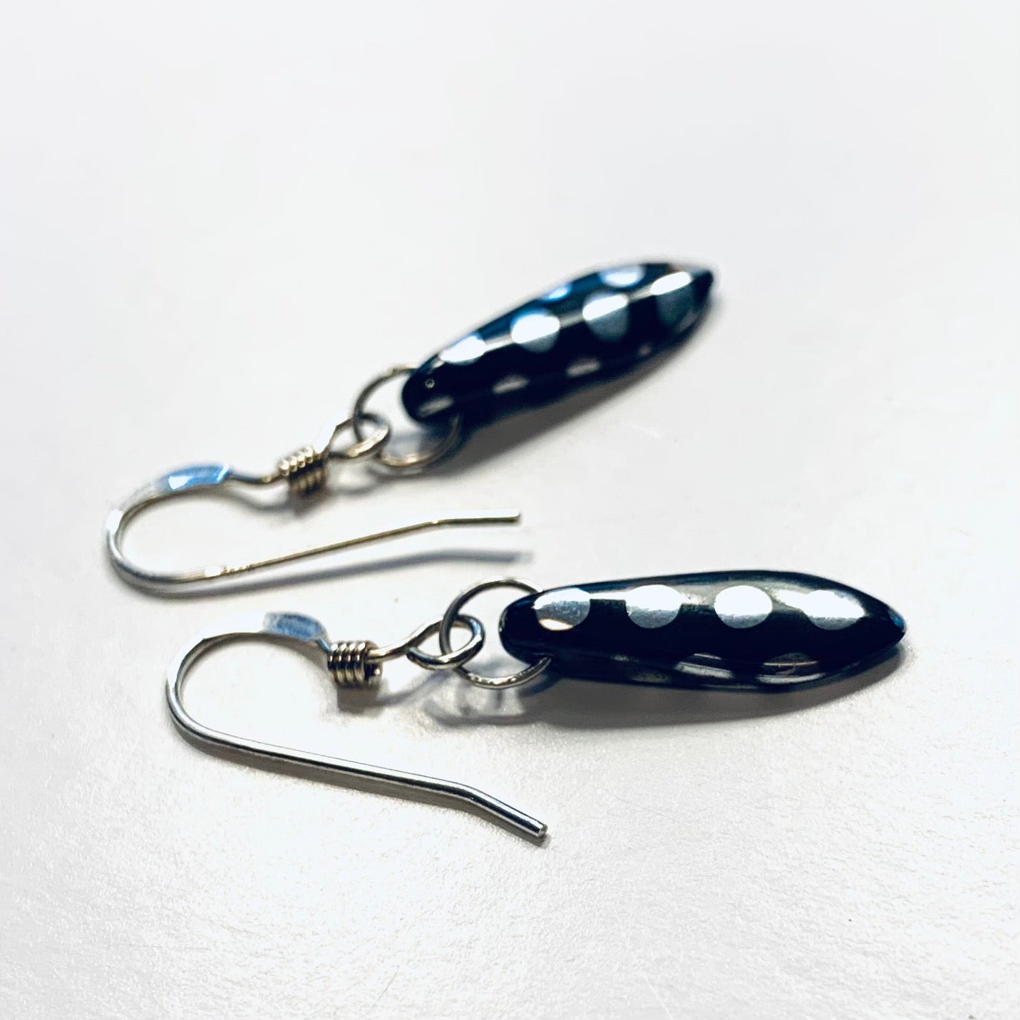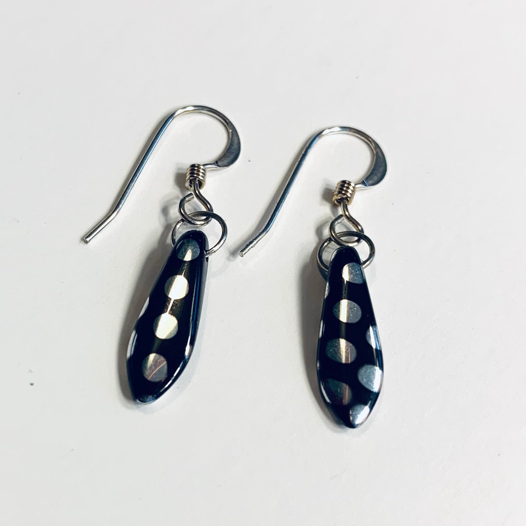 Jane Earrings in Metallic Black and Silver Polka Dot
