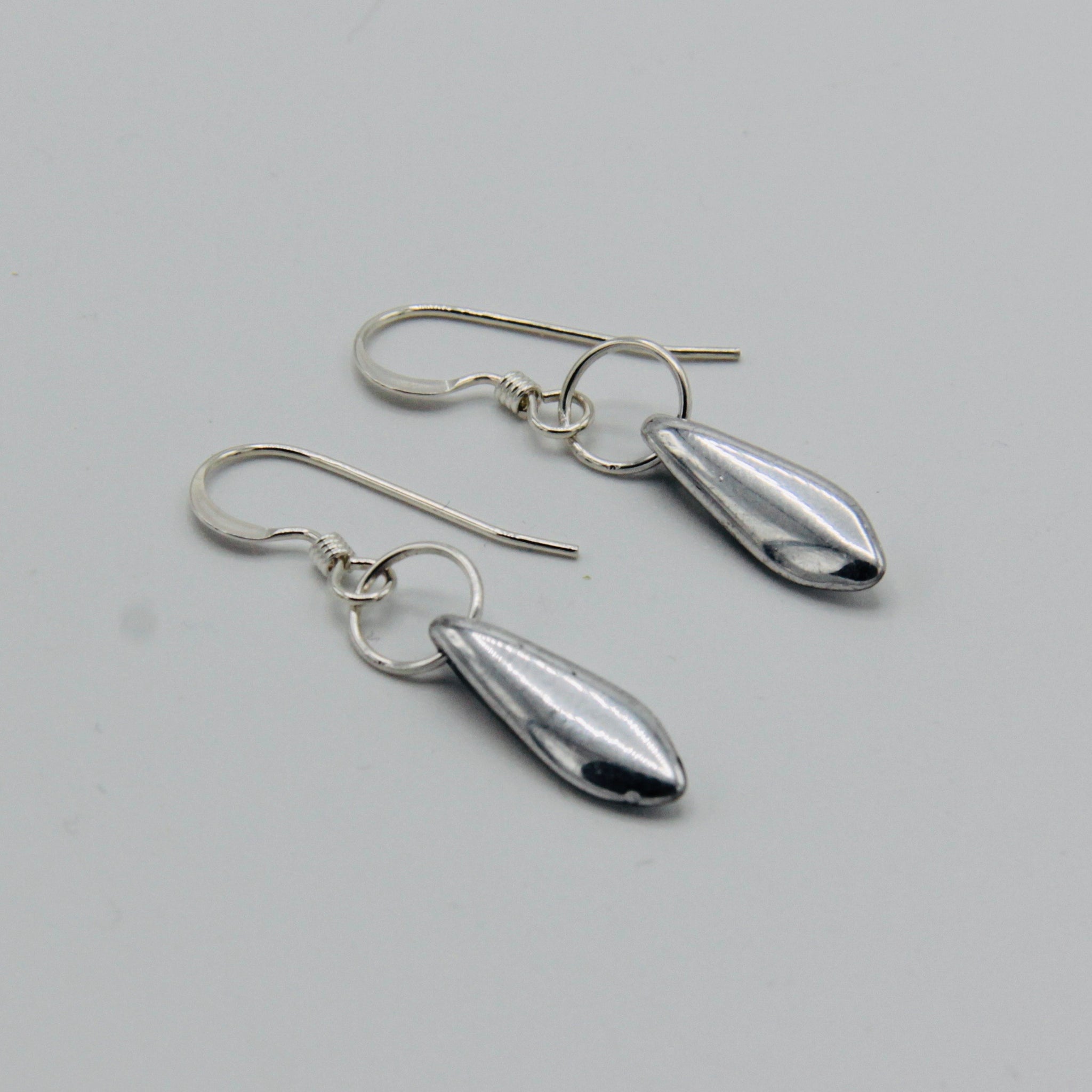 The Jane Earrings represent a simple elegant everyday style. Featuring Czech glass beads and Sterling Silver, these Jane Earring are in solid shiny metallic silver. The simple elegance makes the Jane Earrings an easy choice for everyday wear especially when paired with a matching Anna or Elizabeth necklace and Wendy ring.