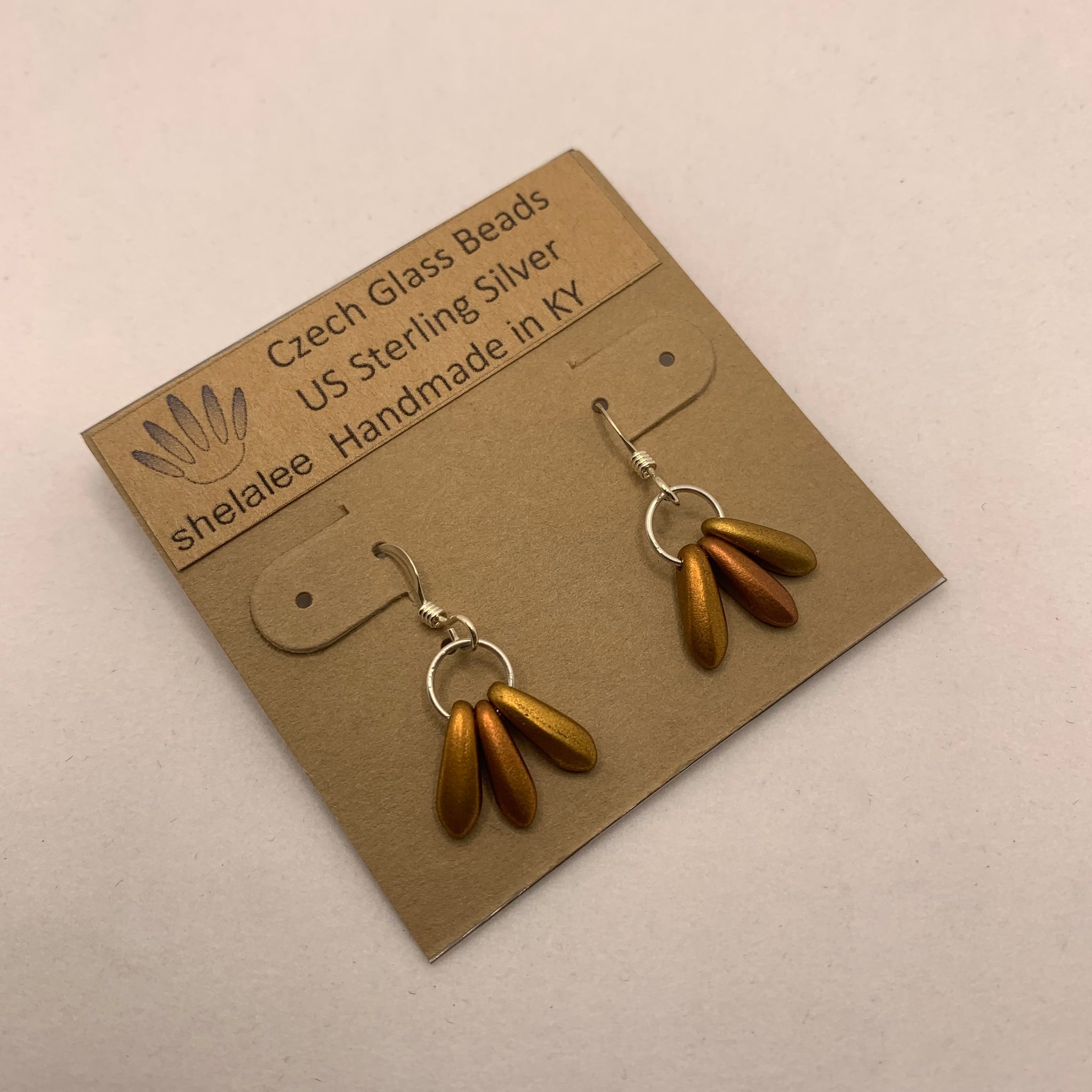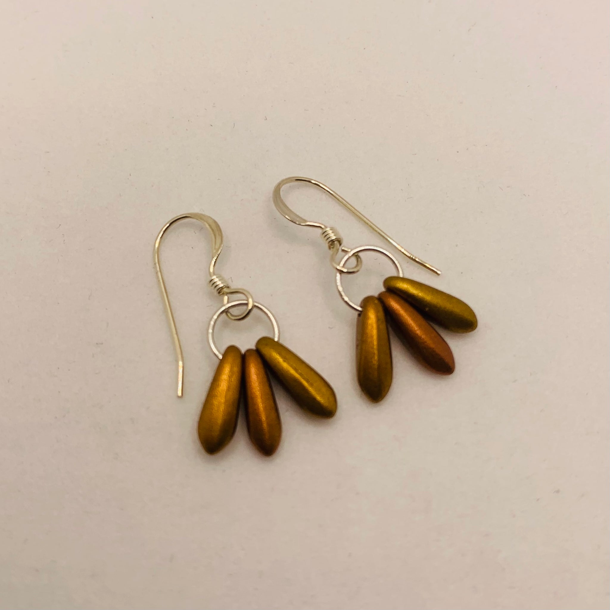 The Janet Earrings represent a simple elegant everyday style. Featuring Czech glass beads and Sterling Silver, these Janet Earring are in honey gold color and matter finish. The Janet earrings are a popular choice for smaller delicate earrings with a dangly flair.
