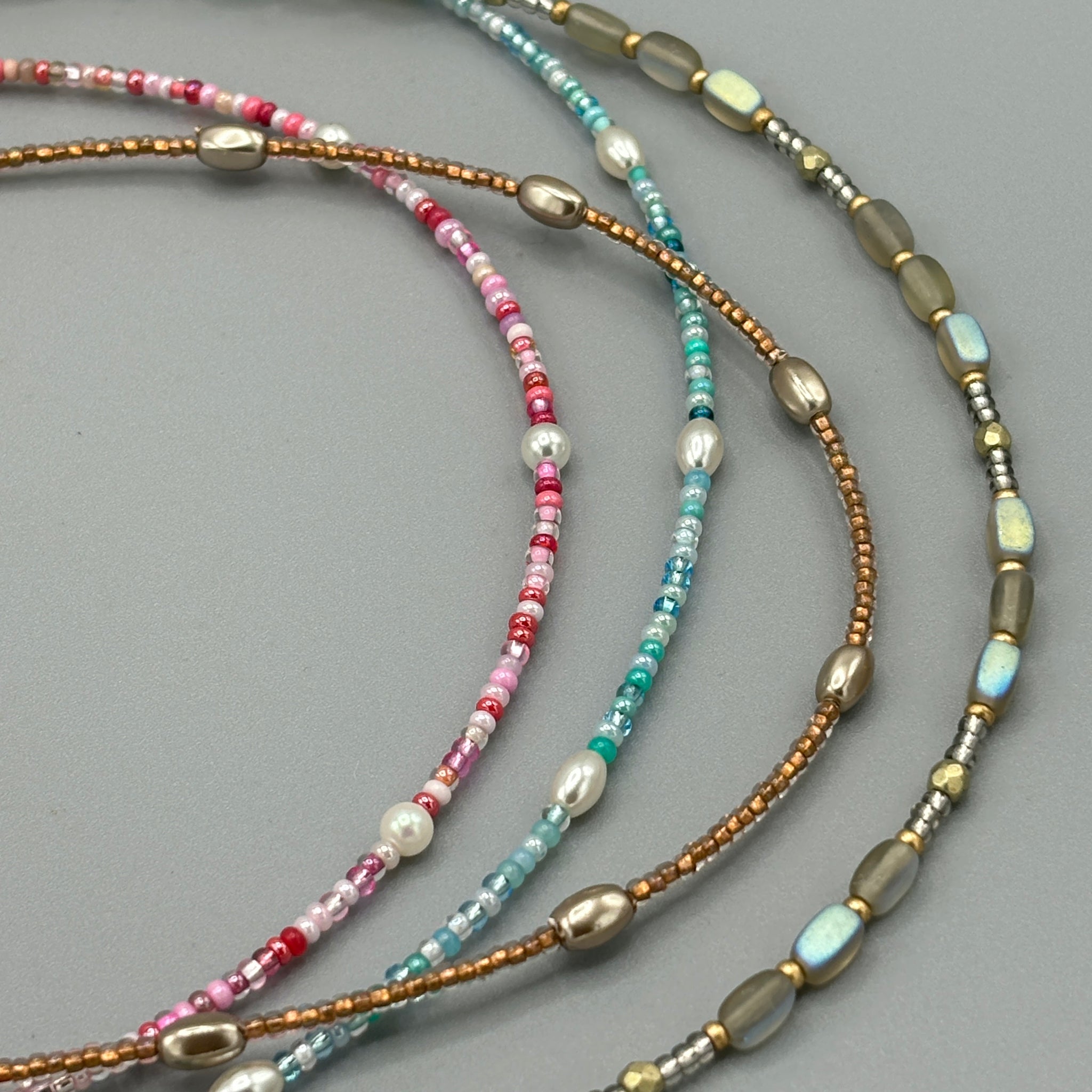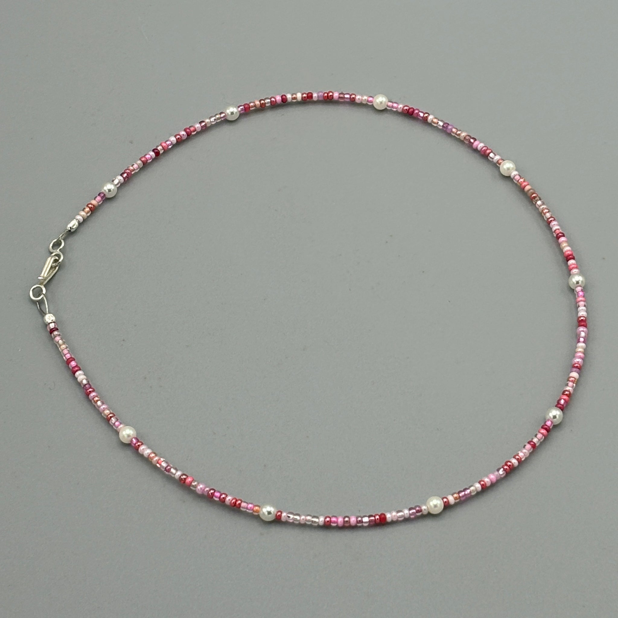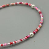 Discover the allure of the Kylie necklace, now cherished by our customers as a new favorite. This piece features a harmonious fusion of seed beads in an array of captivating pink hues, adorned with delicate round pearl beads. Its versatility knows no bounds, making it the ideal accessory for any occasion. Whether paired with an elegant dress or effortlessly elevating a T-shirt and jeans ensemble, the Kylie necklace is your go-to choice for a touch of timeless charm and style.