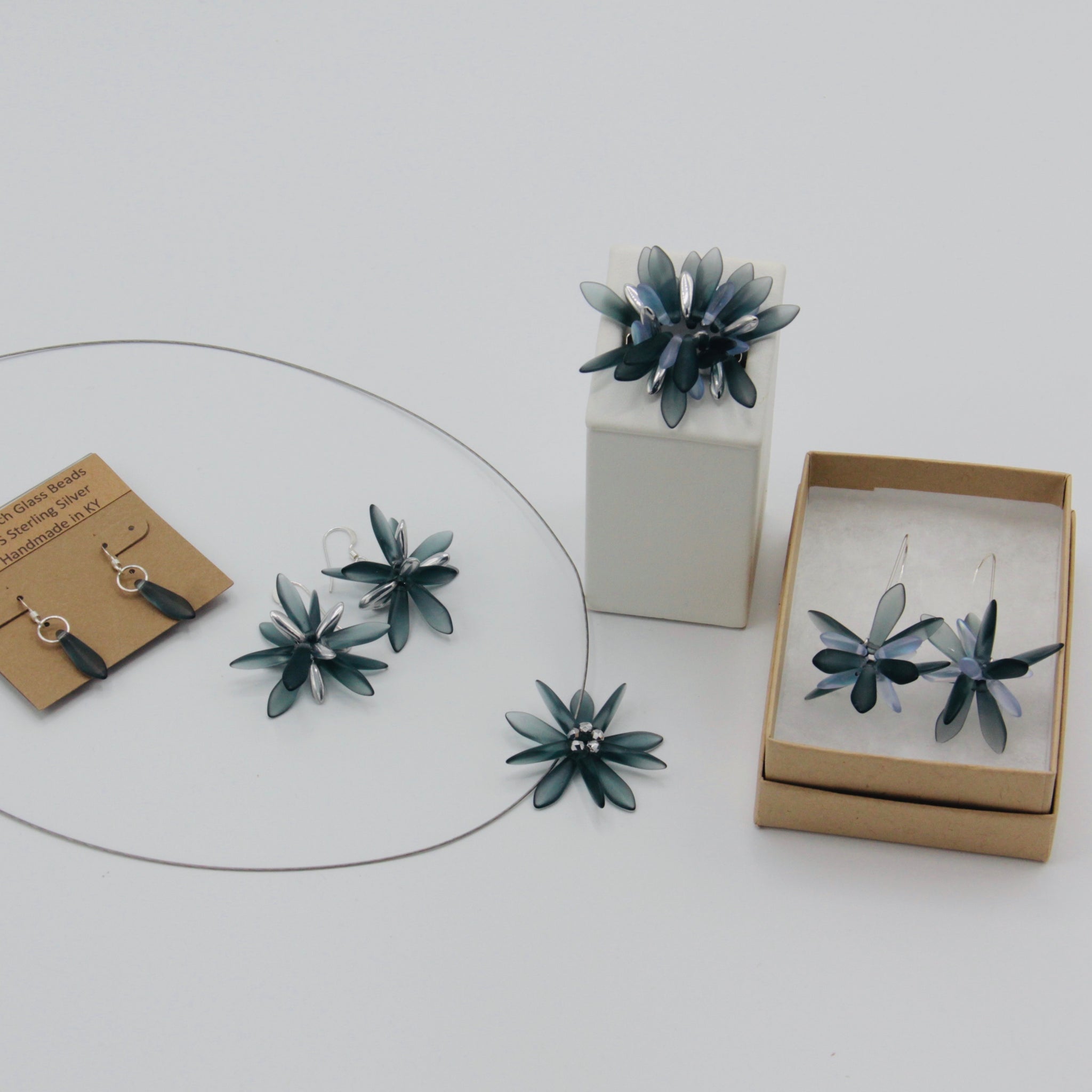 Elevate your everyday look with the dangling light-weight Laura Earrings. The Czech glass beads in matte Montana blue are accented by smaller silver beads. The earrings leave you with an impression of lovely soft neutral while their shape will get them noticed. They can be paired nicely with the matching Wendy ring and Elizabeth necklace.