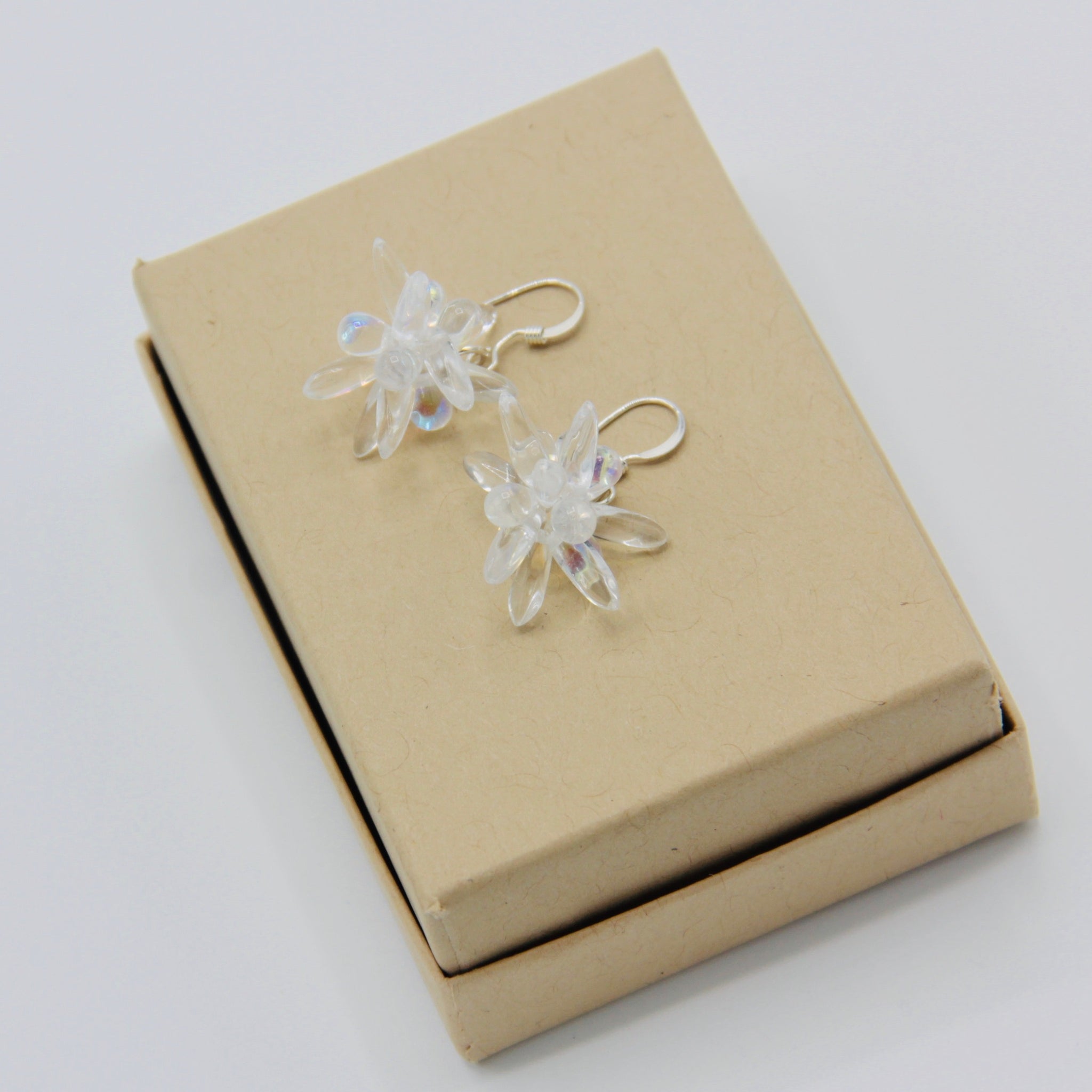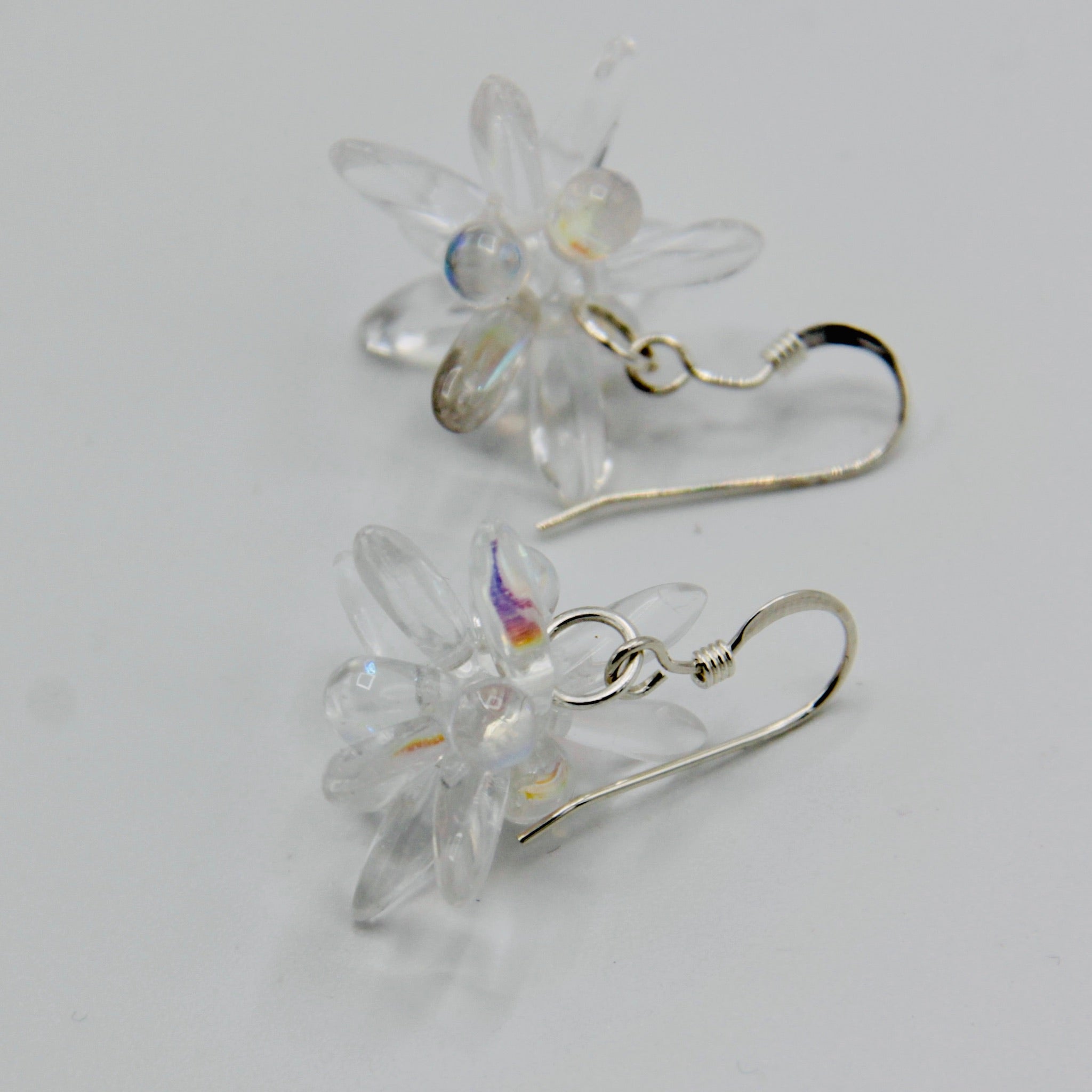 The Mia Earrings are fun dangling earrings. Featuring Czech glass beads and Sterling Silver, these Mia Earrings are combination of shiny crystal clear beads. These earrings are light and small enough to have on the whole day, but big enough to get noticed. We bet that they will become your favorites.