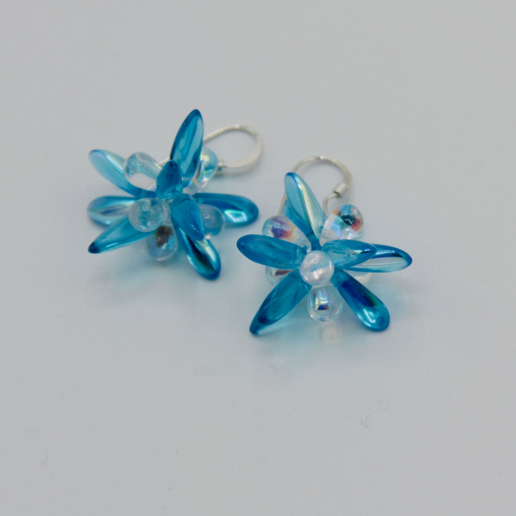 The Mia Earrings are fun dangling earrings. Featuring Czech glass beads and Sterling Silver, these Mia Earrings are combination of shiny turquoise blue and white beads. These earrings are light and small enough to have on the whole day, but big enough to get noticed. We bet that they will become your favorites.