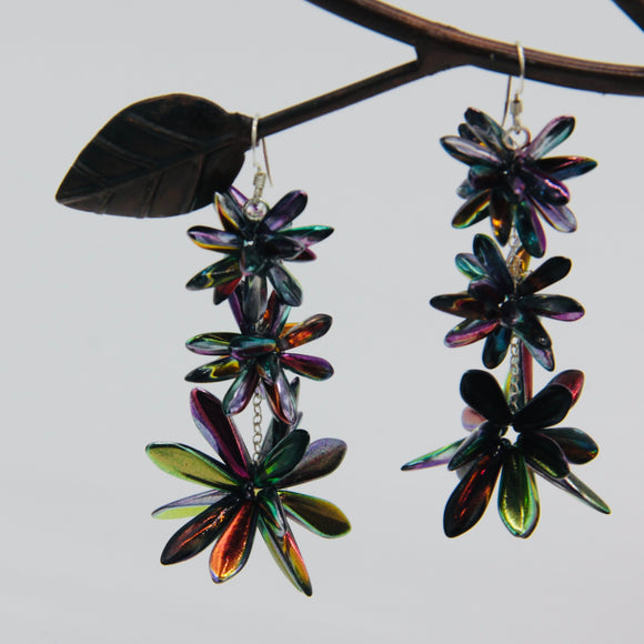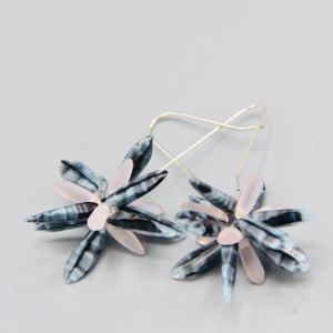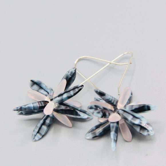 Natalie Earrings in Black and Blue Marble with Matte Pink