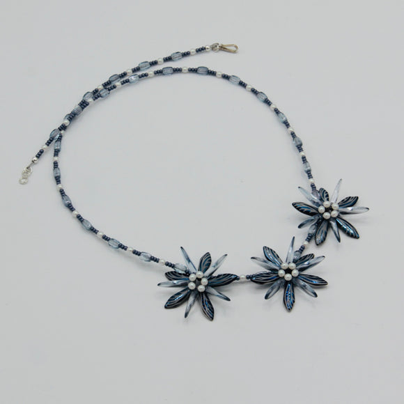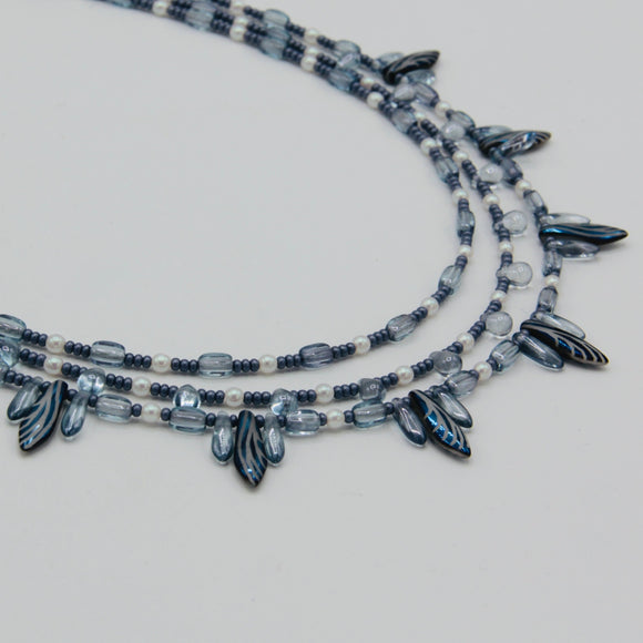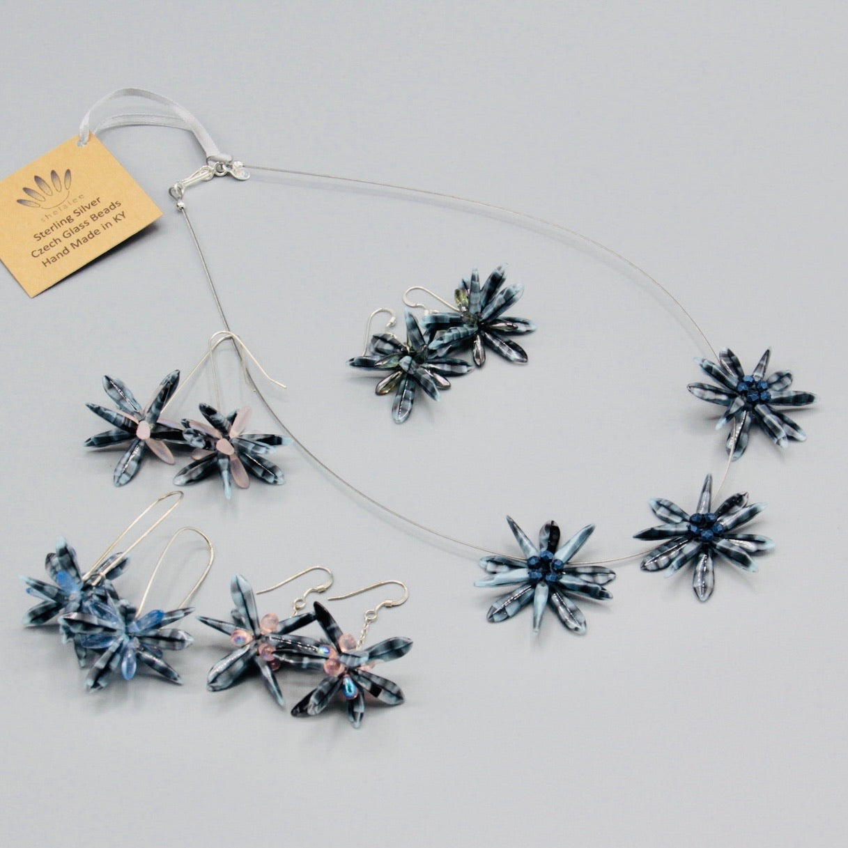 The Natalie Earrings are designed for stylish women on the go. Similar look of a kidney wire but without the hook, these are put on or off in a flash. Featuring Czech glass beads and Sterling Silver, these Natalie Earring include blue and black marble design beads with matte pink accents.  The simple elegance make the Natalie Earrings the ultimate outfit elevator.