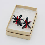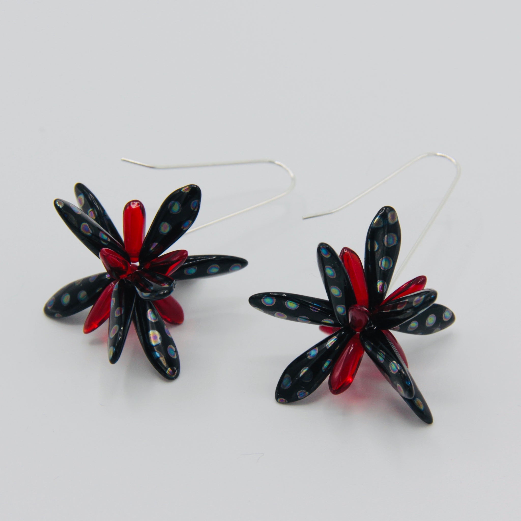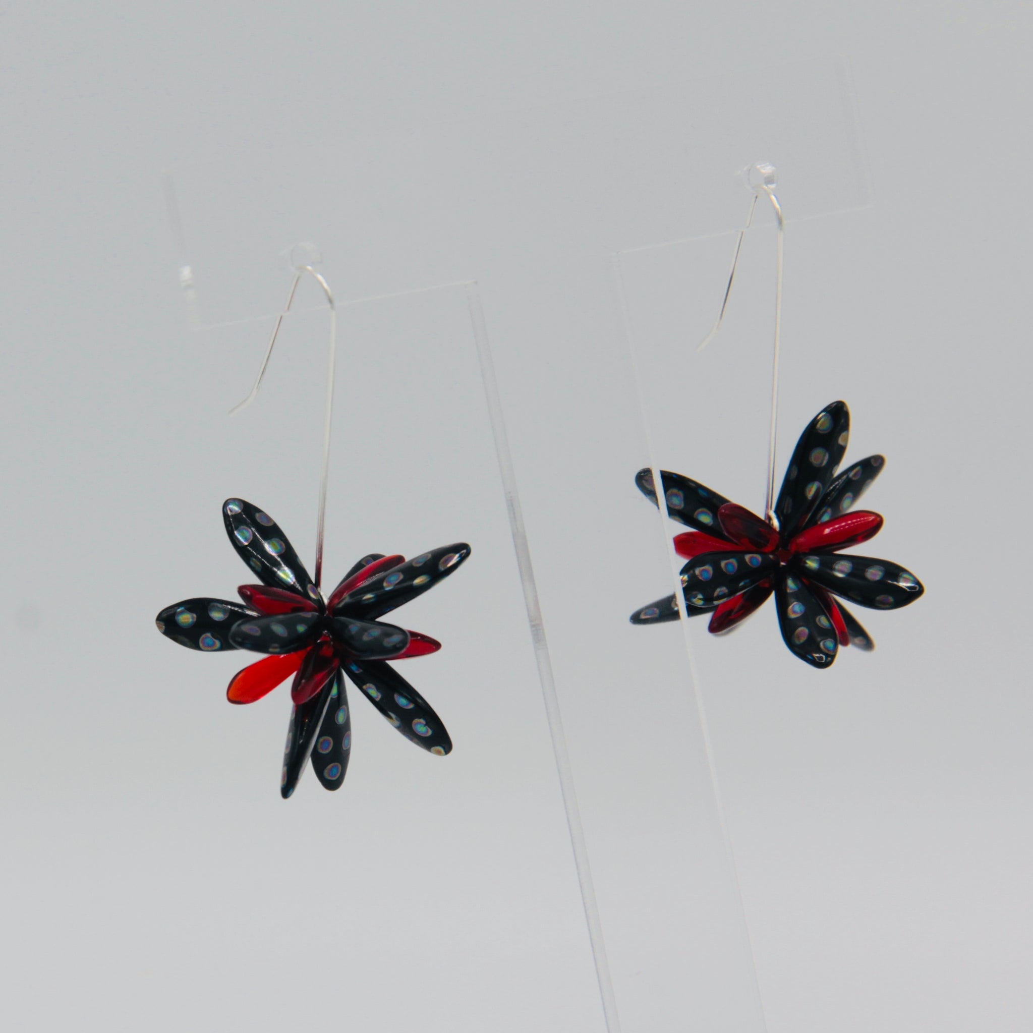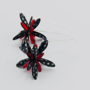 Eileens Earrings in Black Metallic Spots with Red Accents