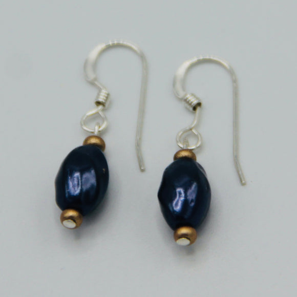 Keep it simple and elegant with this fresh take on pearls. These Penelope earrings feature Czech glass beads with pearl finish on a Sterling Silver pin and French hook ear piece. The earrings are light weight, dangly, and so versatile to wear whenever you feel like dressing up a little. This pair is a perfect match to Nora Necklace in Navy Pearl and Gold that is listed separately.