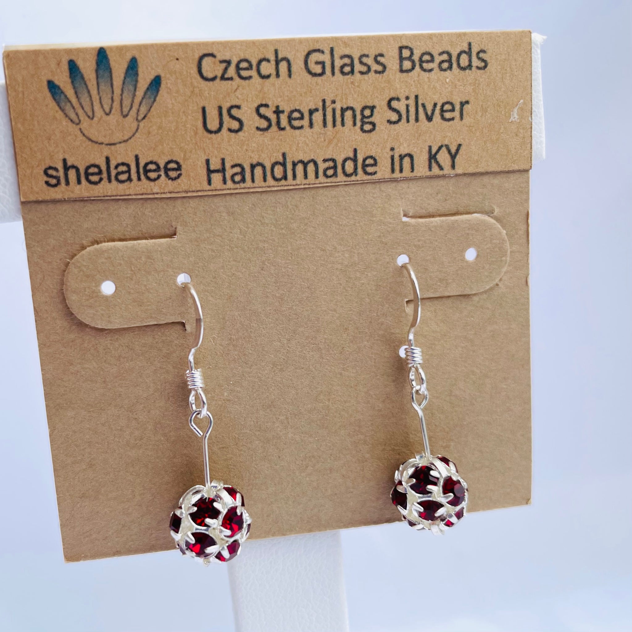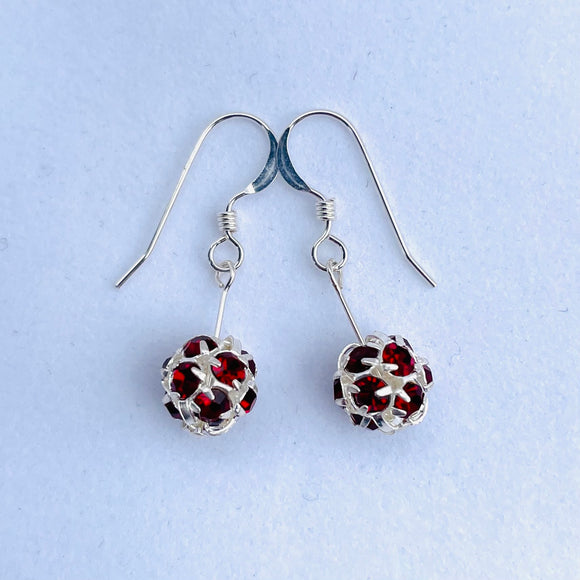 Penelope Earrings with Preciosa Rhinestone Ball in Red and Silver