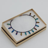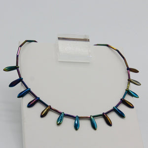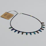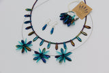 The Rebecca necklace is a simple elegance with a twist. Featuring Czech glass beads and Sterling Silver closure, the necklace is in shiny blue iris. This is just a perfect piece to take you anywhere from office to evening event. The matching Jane earrings are also available.