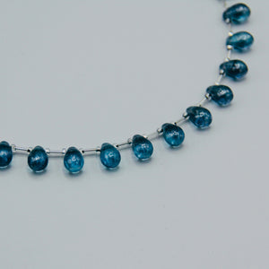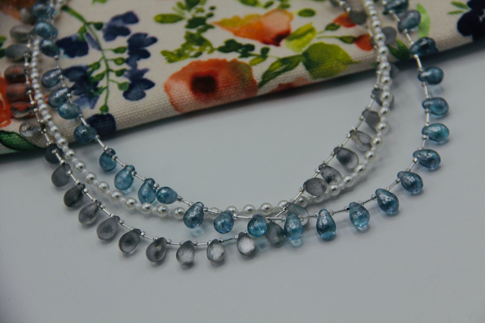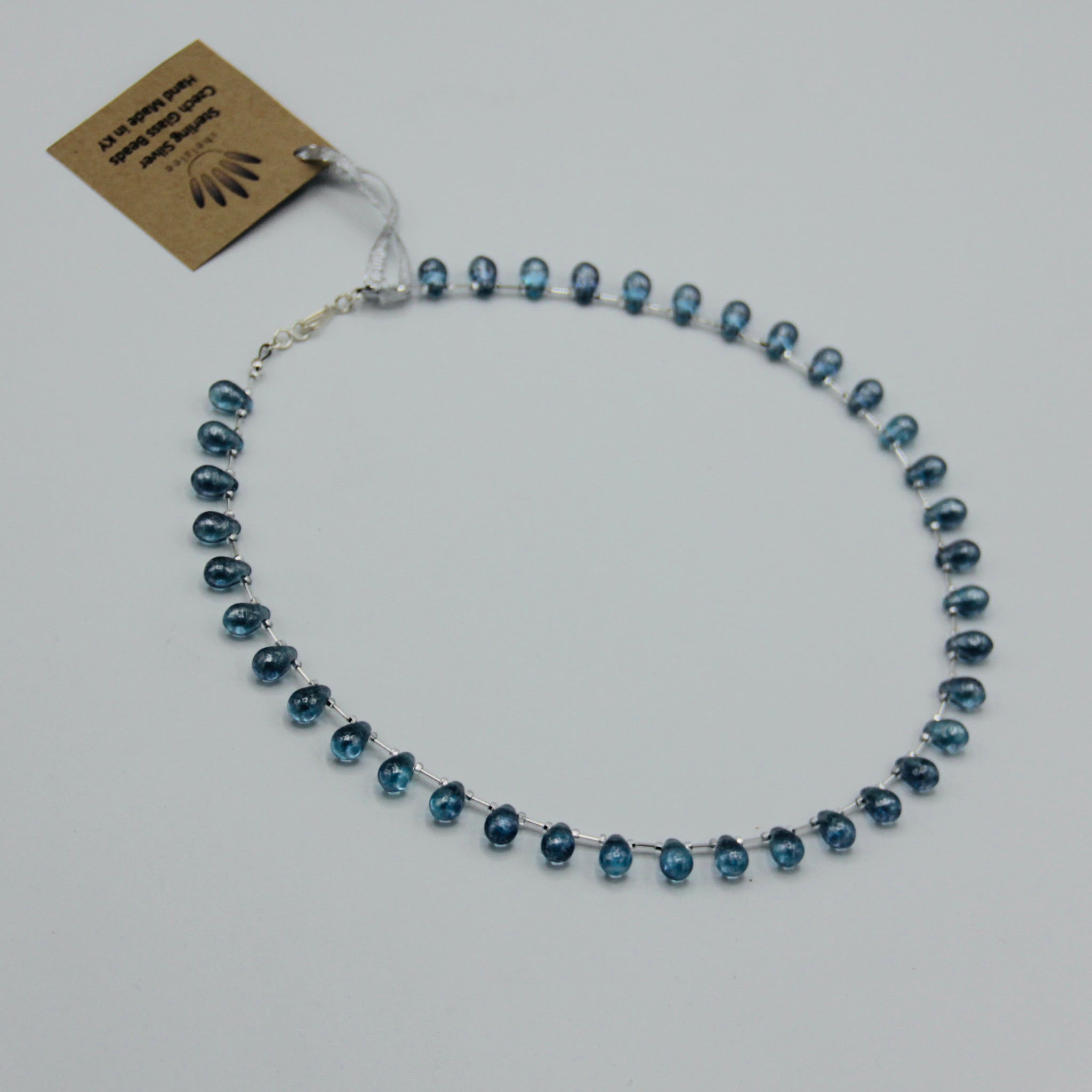 Discover the allure of the Rosie necklace, where simplicity meets radiance. Adorned with Czech glass beads and secured with a Sterling Silver closure, this necklace boasts a delicate blue tone with hints of silver shimmer. Effortlessly elevate your style from casual days to elegant evenings with this versatile accessory. For a coordinated look, pair it with the matching Tracy Earrings. The Rosie necklace measures a shorter length of 17 inches, with the option to customize its length by adding a note to your order.