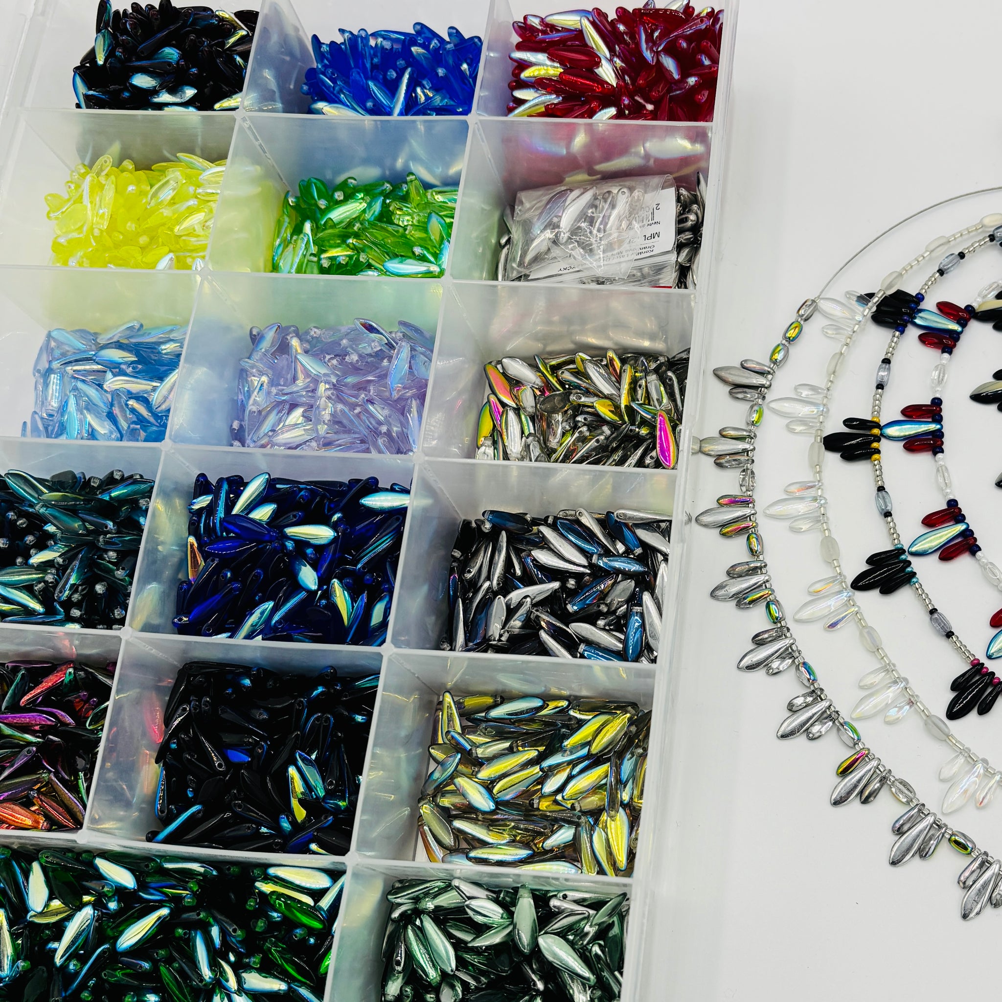 - All materials (Czech glass beads, stringing materials, jewelry findings)