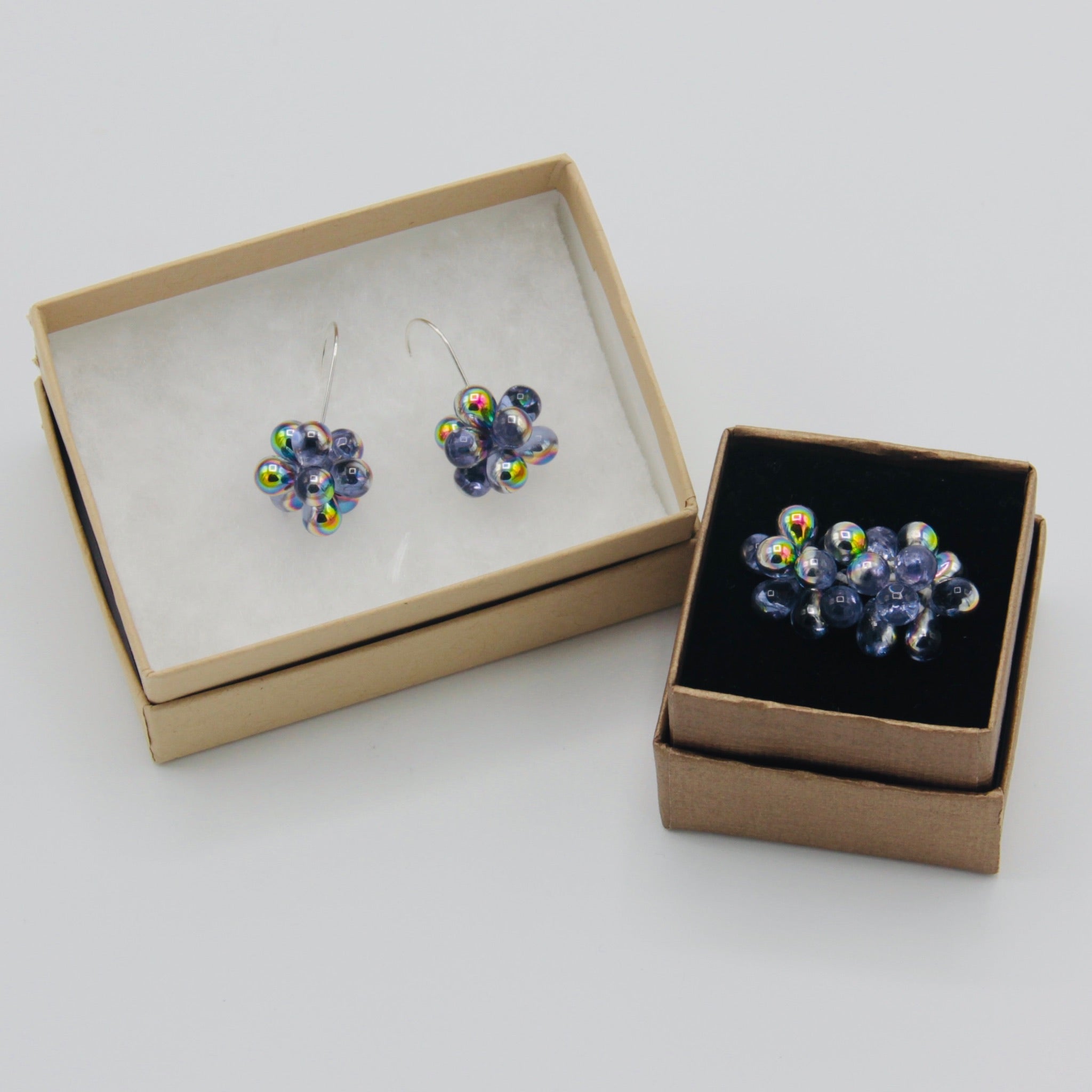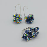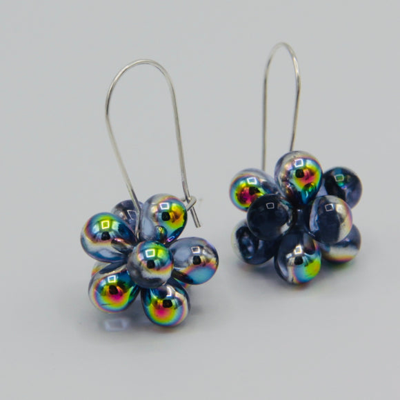 The Tracy Earrings are a softer take on our best selling Eileen Earrings. The round bead cluster adds a sparkle to your outfilt.  Featuring Czech glass beads and Sterling Silver, the Tracy Earrings are available in three different length.  The Tracy Earrings can be paired with matching Petra Ring.
