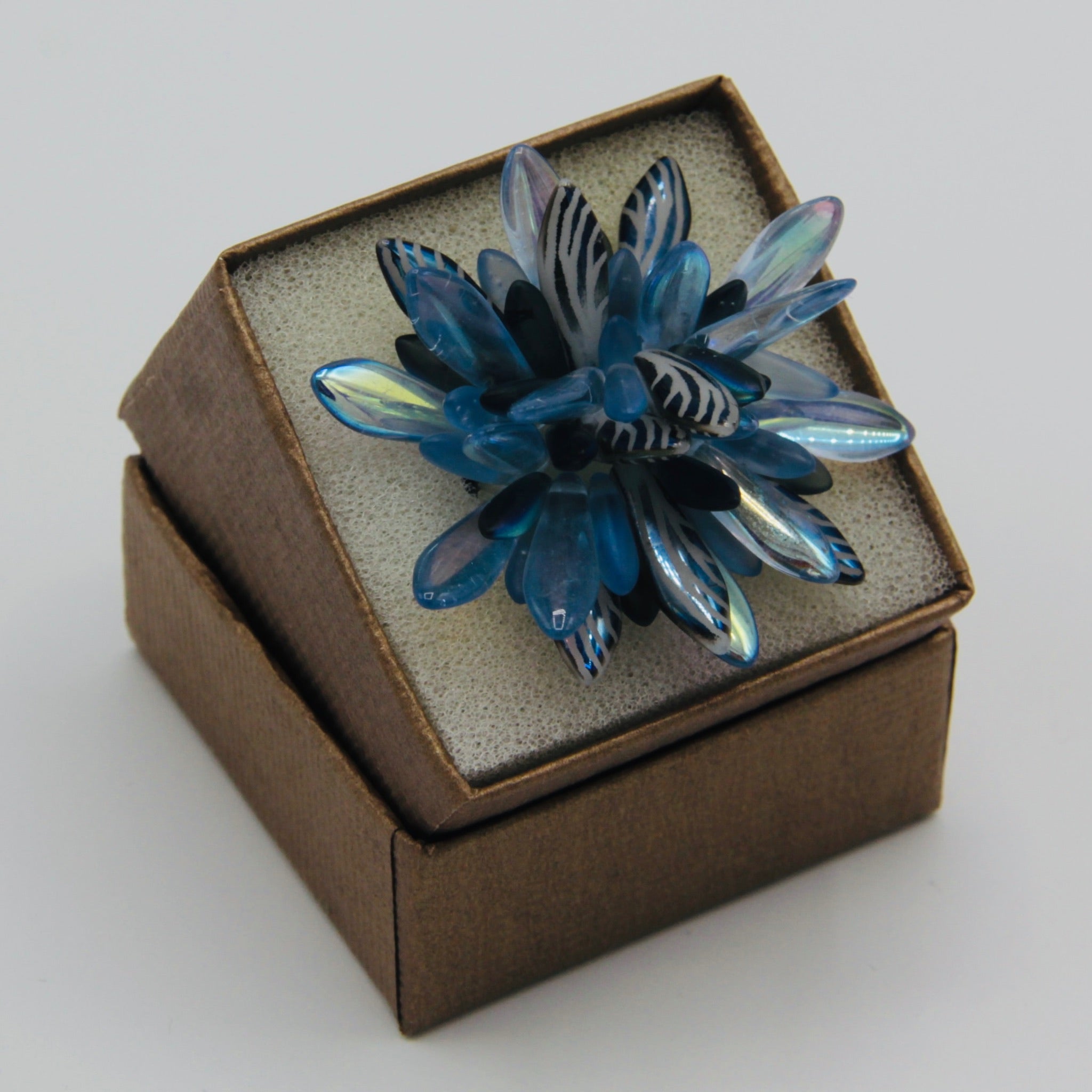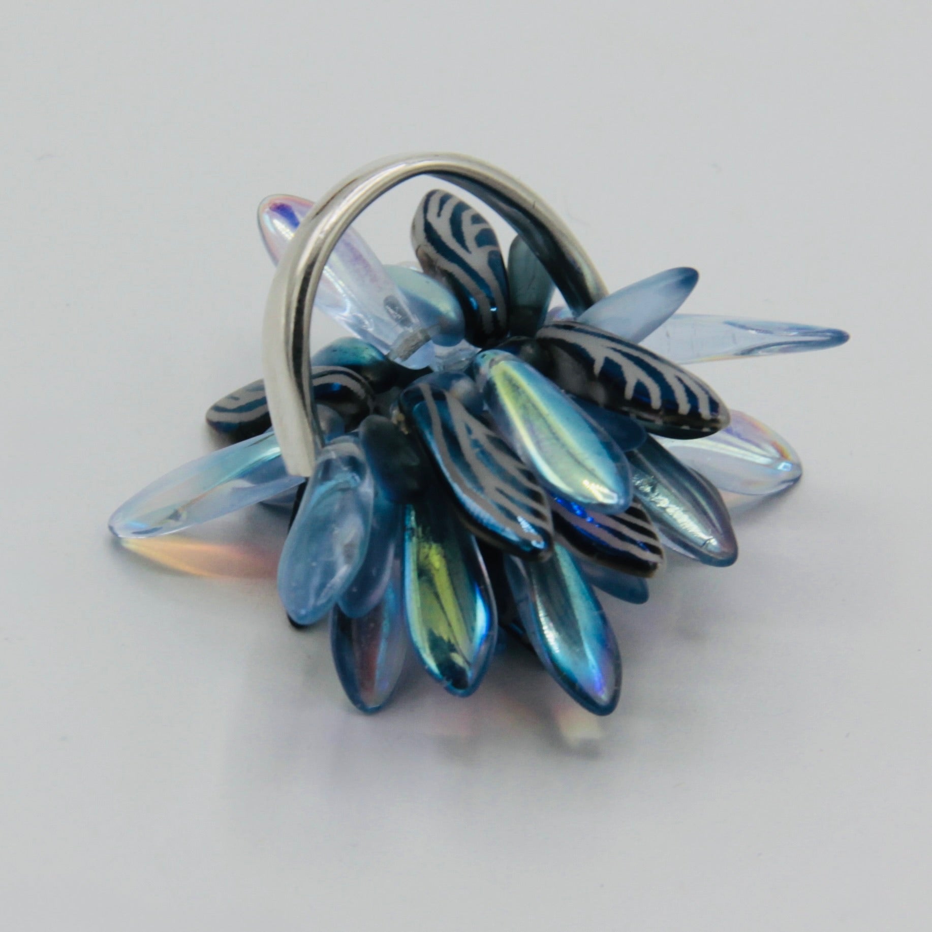 With a bold presence, this ring effortlessly adds elegance to any look - perfect for those who appreciate uniqueness and timeless beauty. Czech glass dagger beads are meticulously selected and embraced by American Sterling Silver tube, strung together on a durable elastic cord made in the USA. To complete the experience, this exquisite piece is nestled in a lovable box crafted from 100% recycled cardboard, also made in the USA.